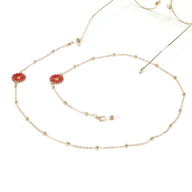 Металлическая нескользящая цепочка золотого цвета, с красной ромашкой, для очков и масок GL1031
