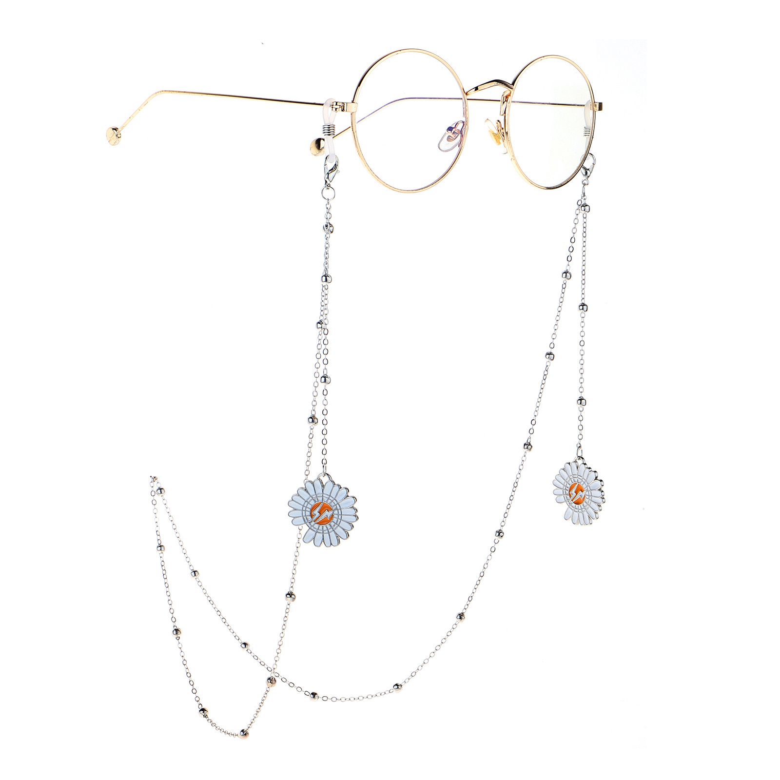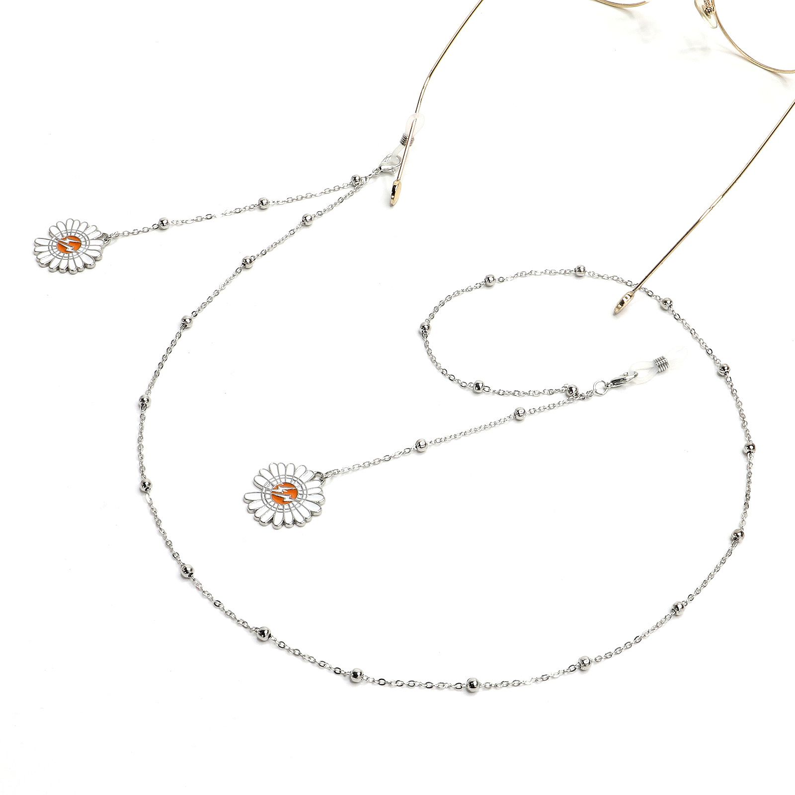 Металлическая нескользящая цепочка серебряного цвета, с ромашкой и бусинами для очков и масок GL1040