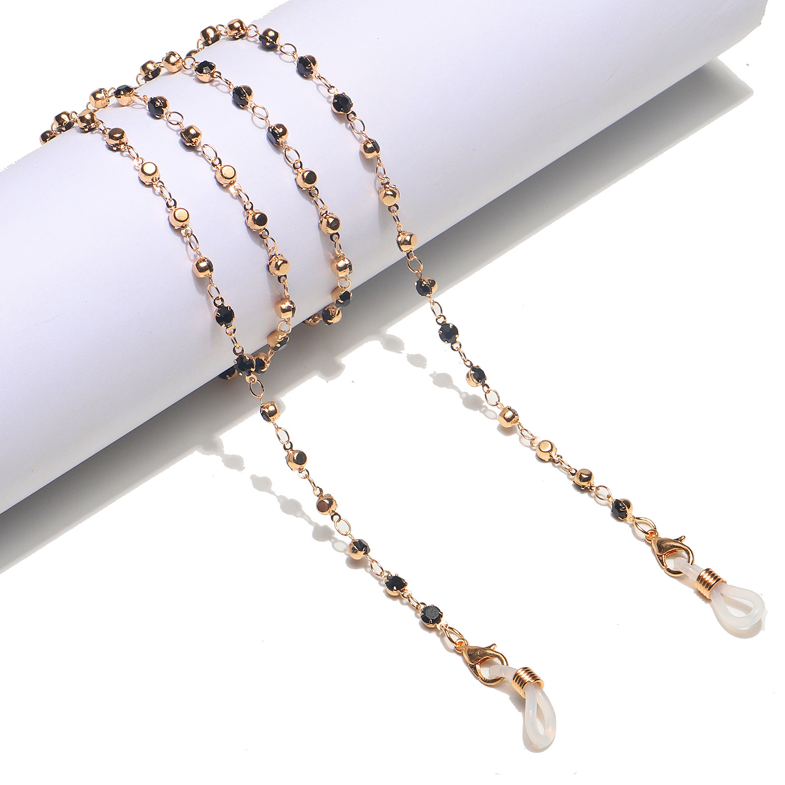 Металлическая цепочка для очков и масок с чёрными стразами GL1147