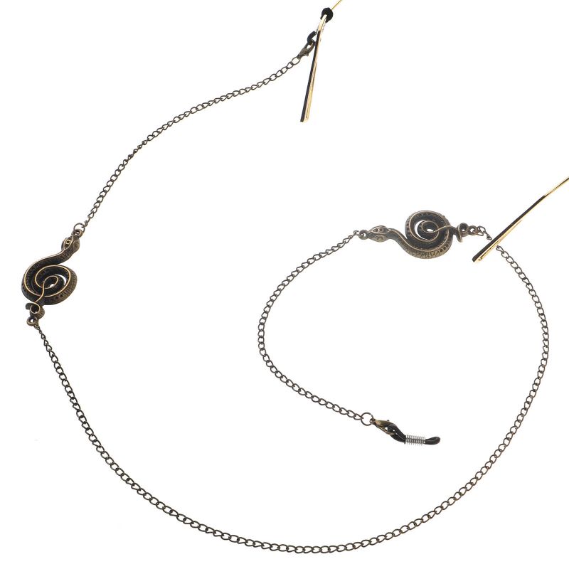 Металлическая нескользящая цепочка бронзового цвета, cо змеей, для очков и масок GL118