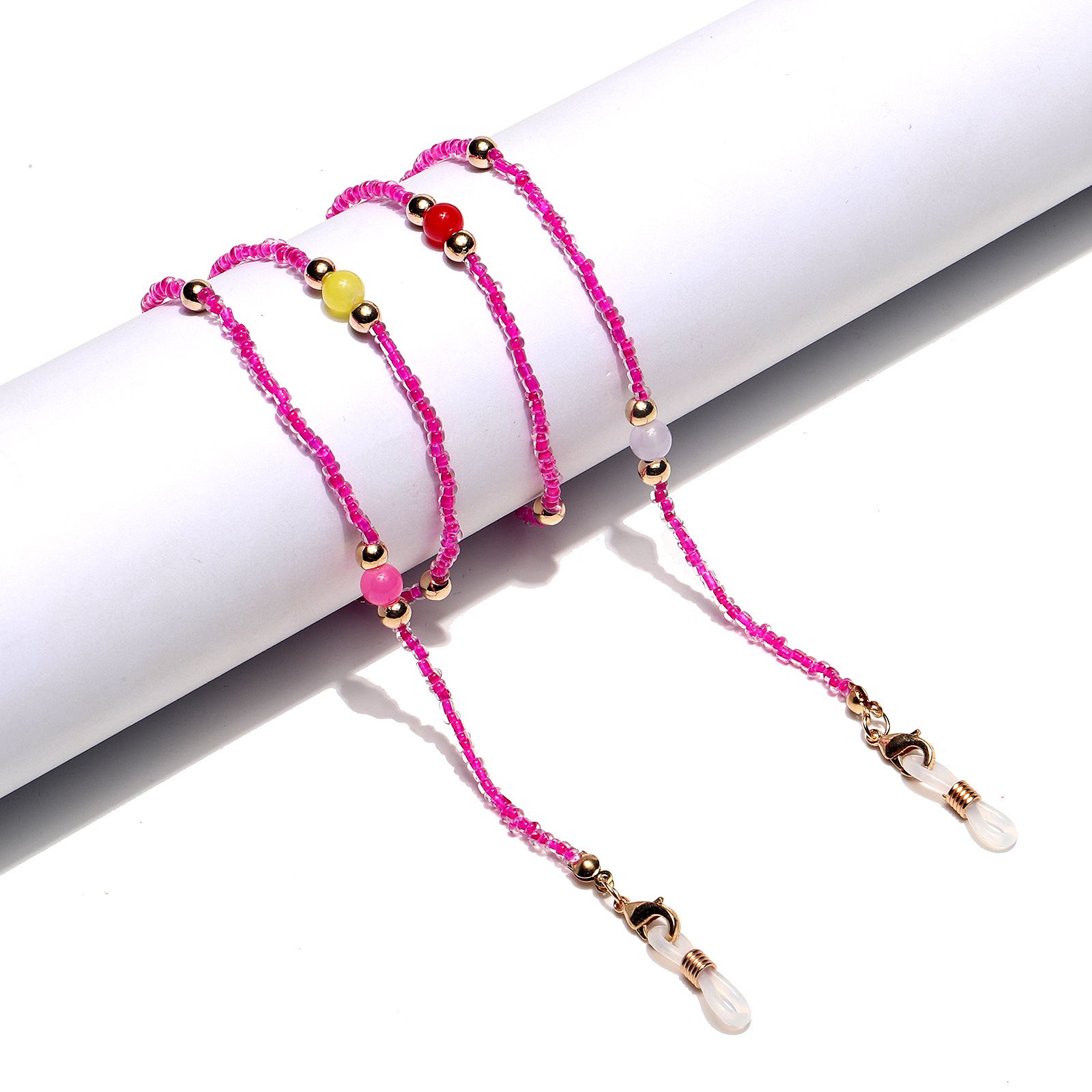 Металлическая нескользящая цепочка,с круглыми и рисовыми бусинами, для очков и масок GL1286