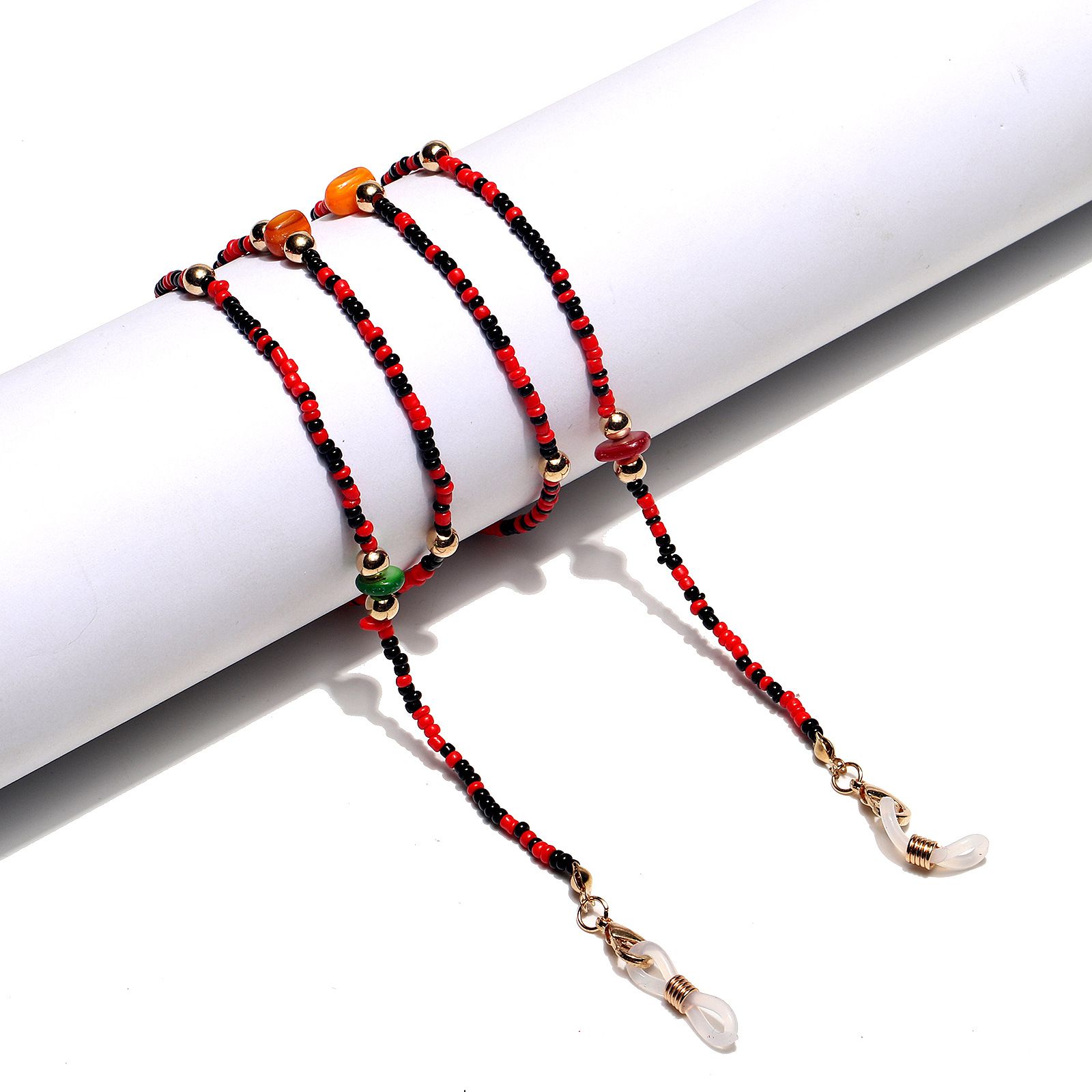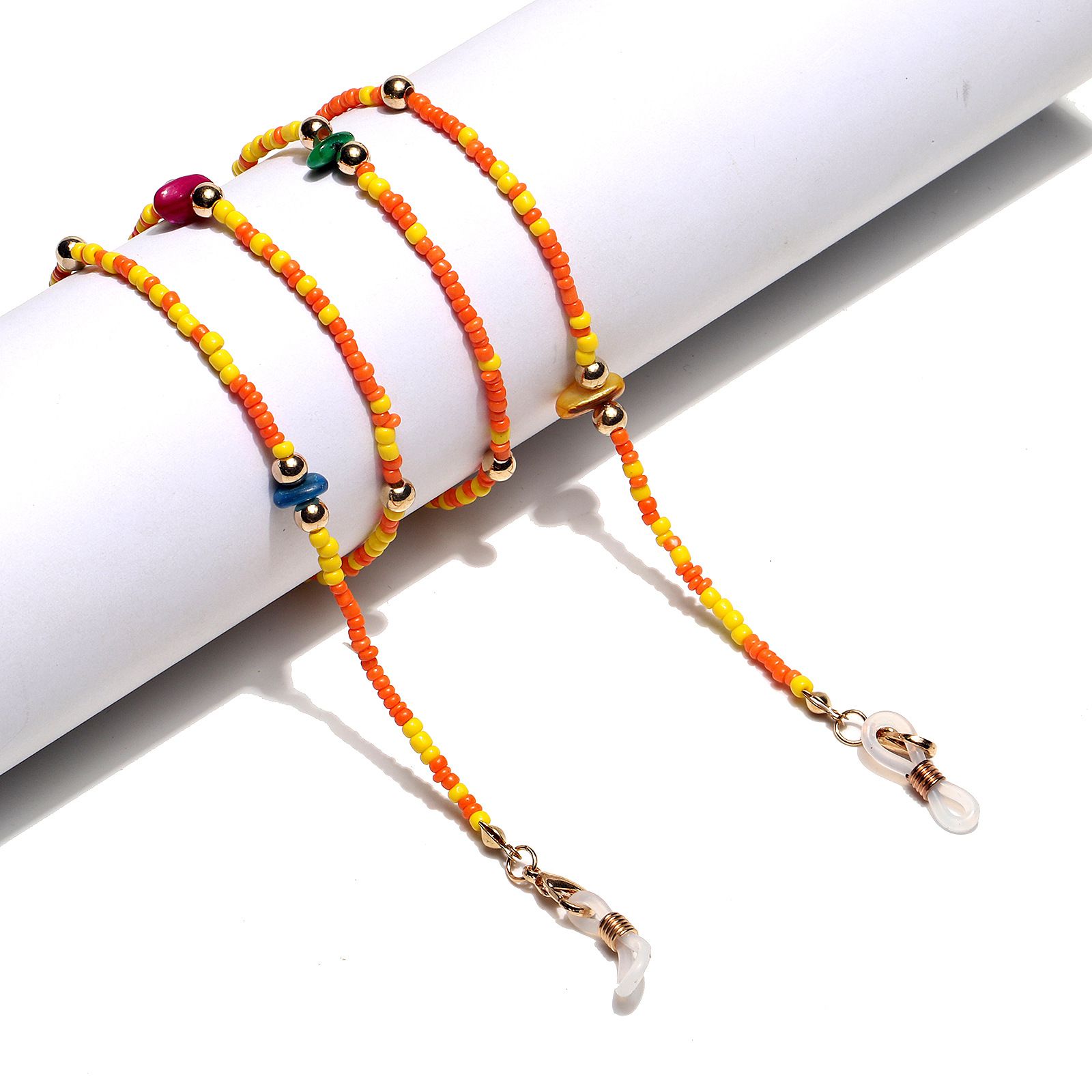 Металлическая нескользящая цепочка золотого цвета, с разноцветными рисовыми бусинами и камнем, для очков и масок GL1287