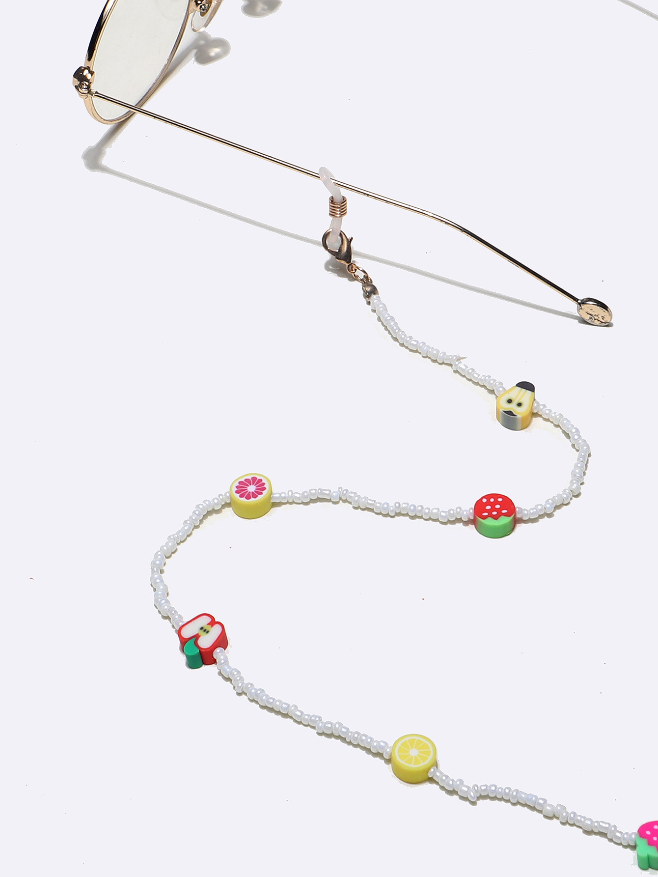 Белая цепочка для очков из рисовых бусин с глиняными фруктами GL1288