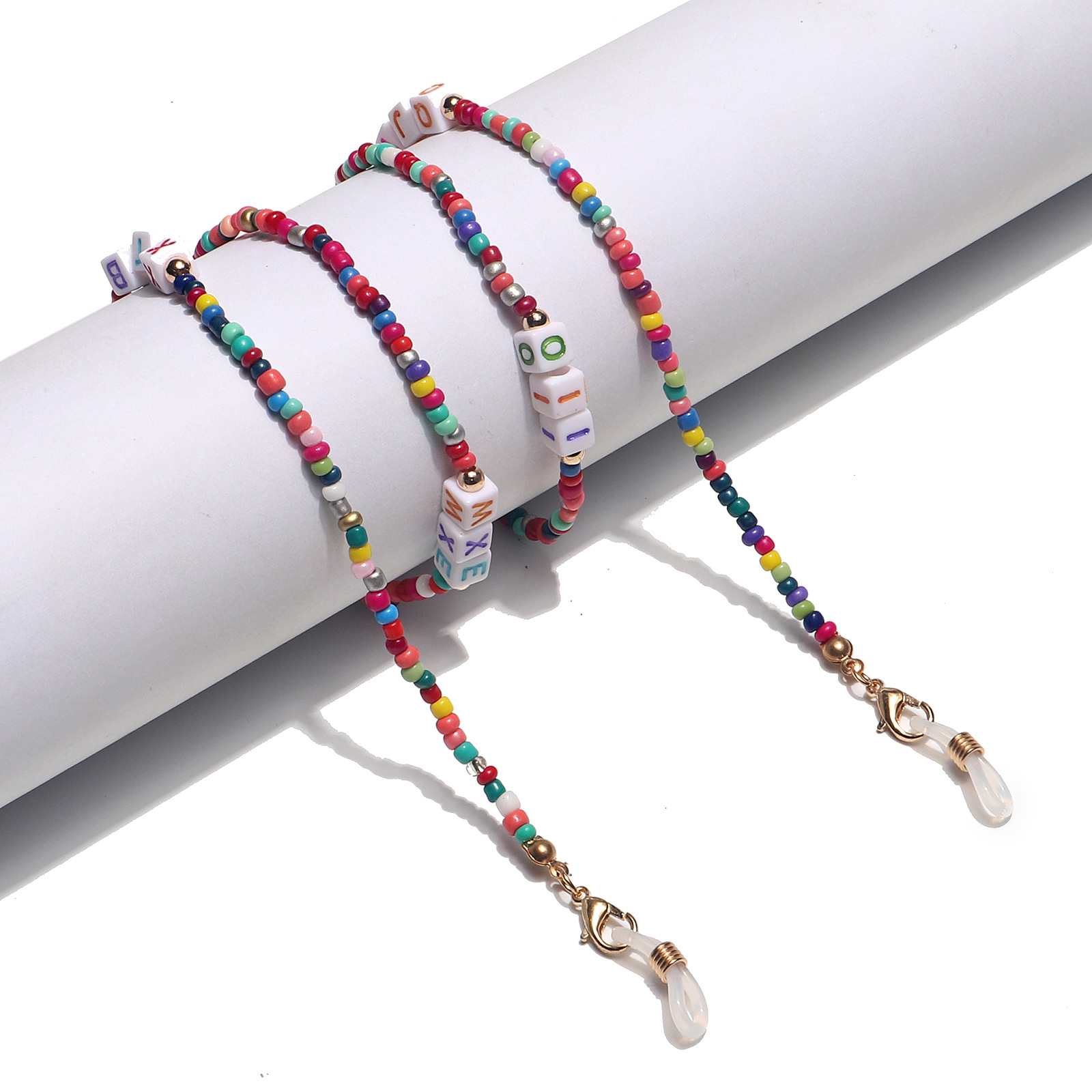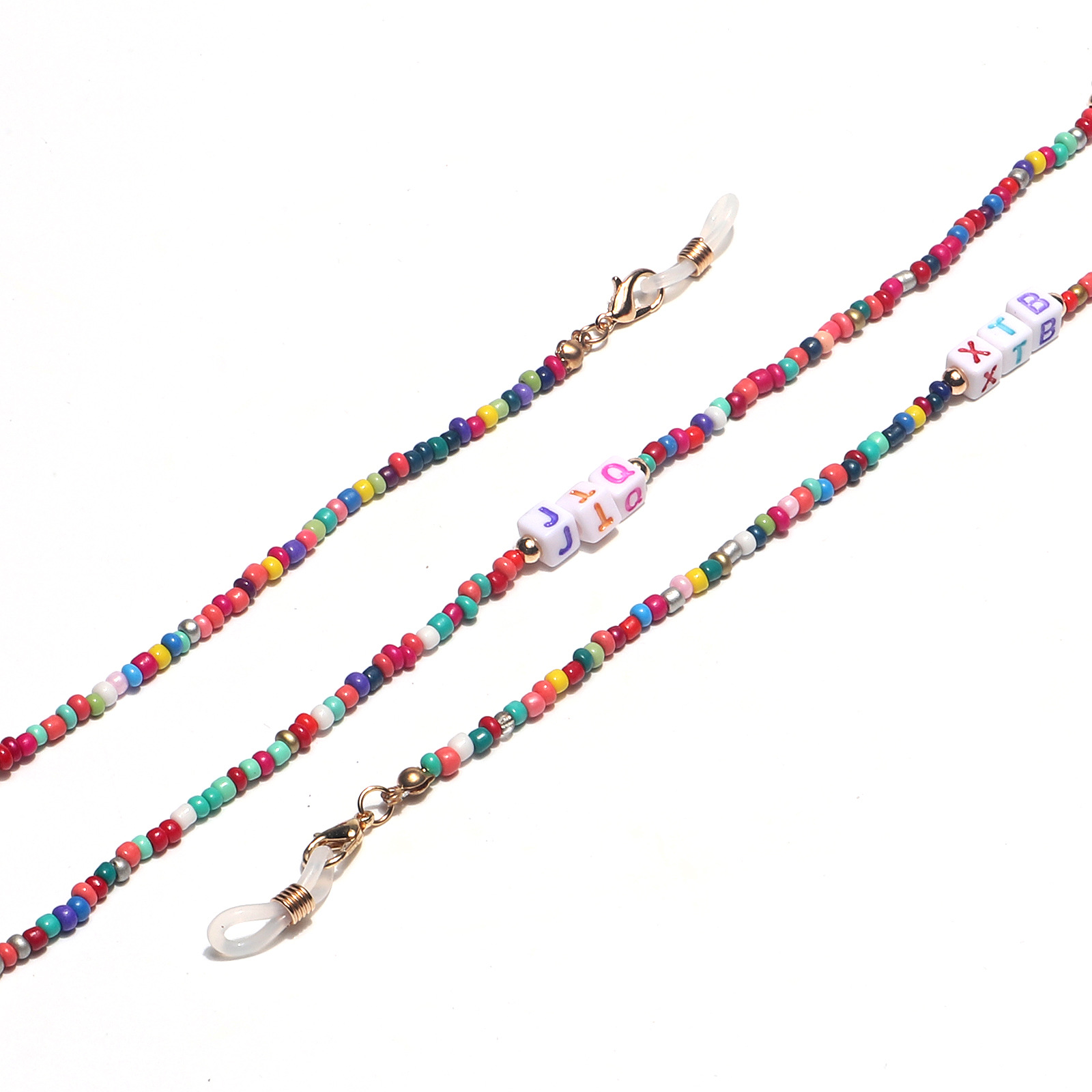 Разноцветная цепочка для очков из рисовых бусинок с буквами GL1373
