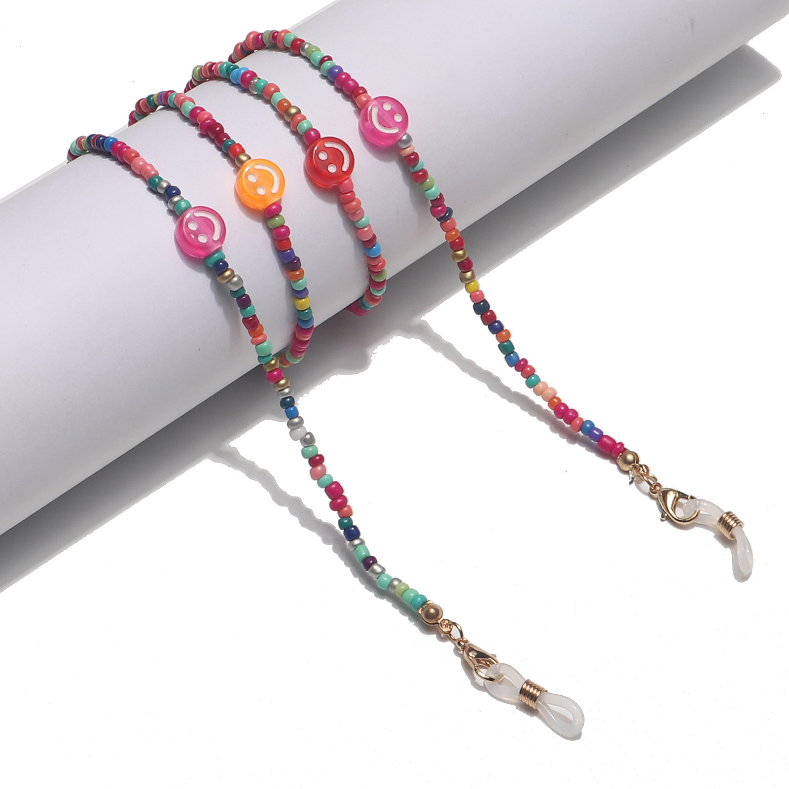 Модная цепочка для очков с разноцветными рисовыми бусинами и смайликами GL1375