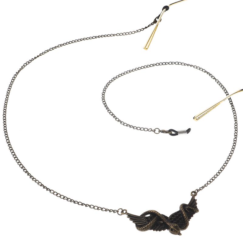 Металлическая нескользящая цепочка бронзового цвета, c крыльями и змеёй, для очков и масок GL141