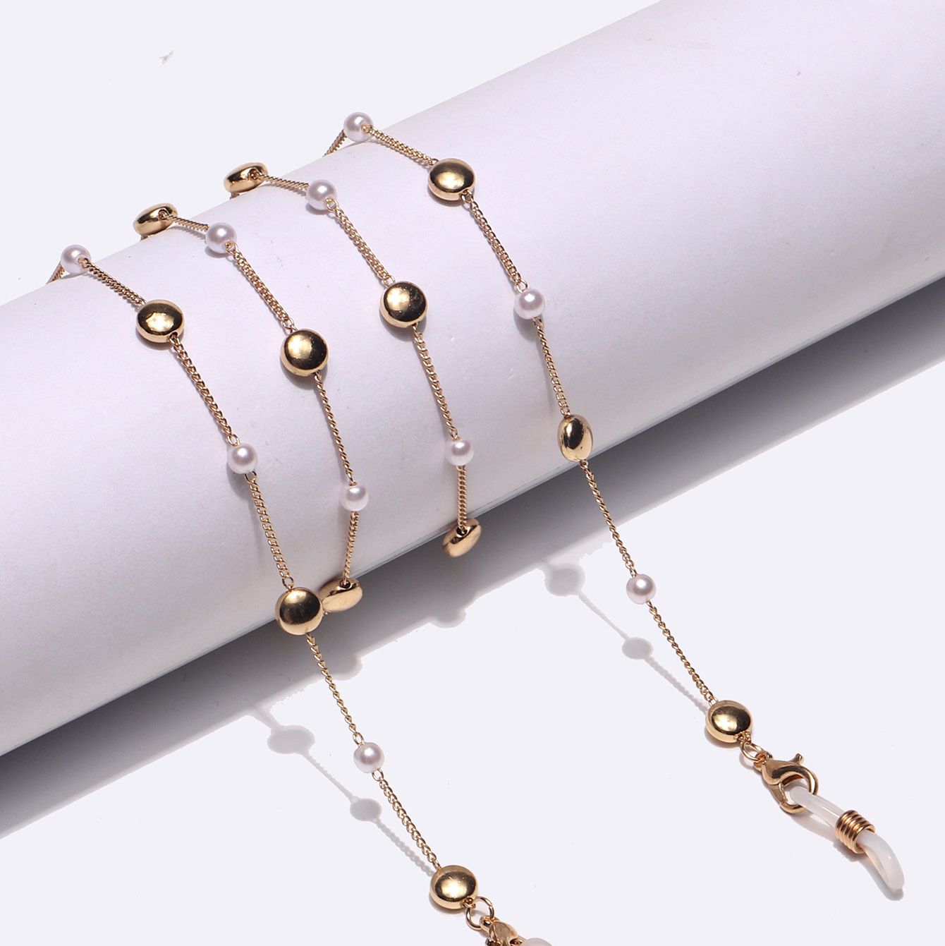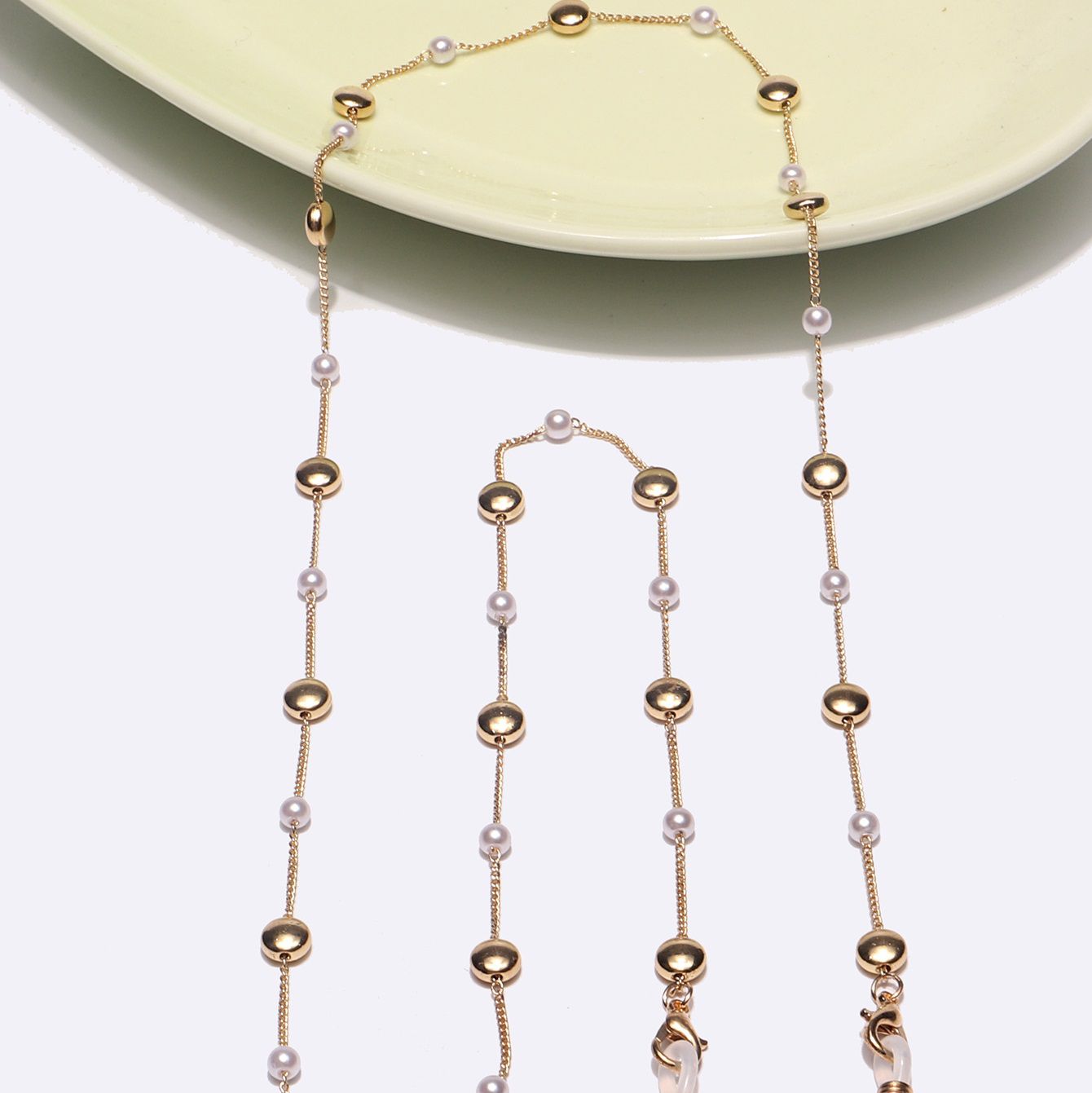 Металлическая нескользящая цепочка золотого цвета, с жемчугом, для очков и масок GL1413