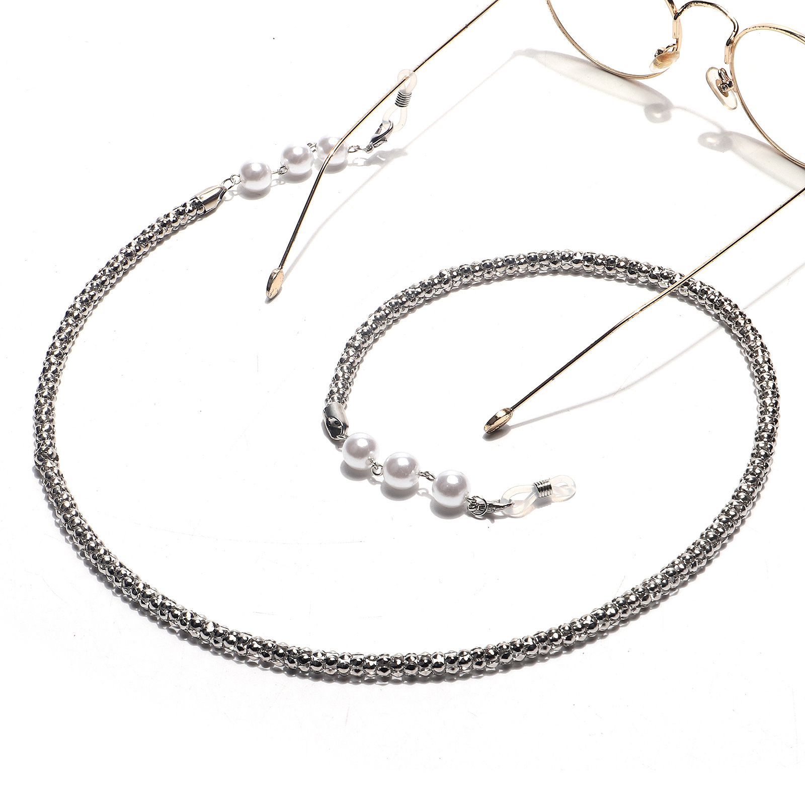 Металлическая нескользящая цепочка, толщина 6 мм с жемчугом 10 мм, для очков и масок GL1438