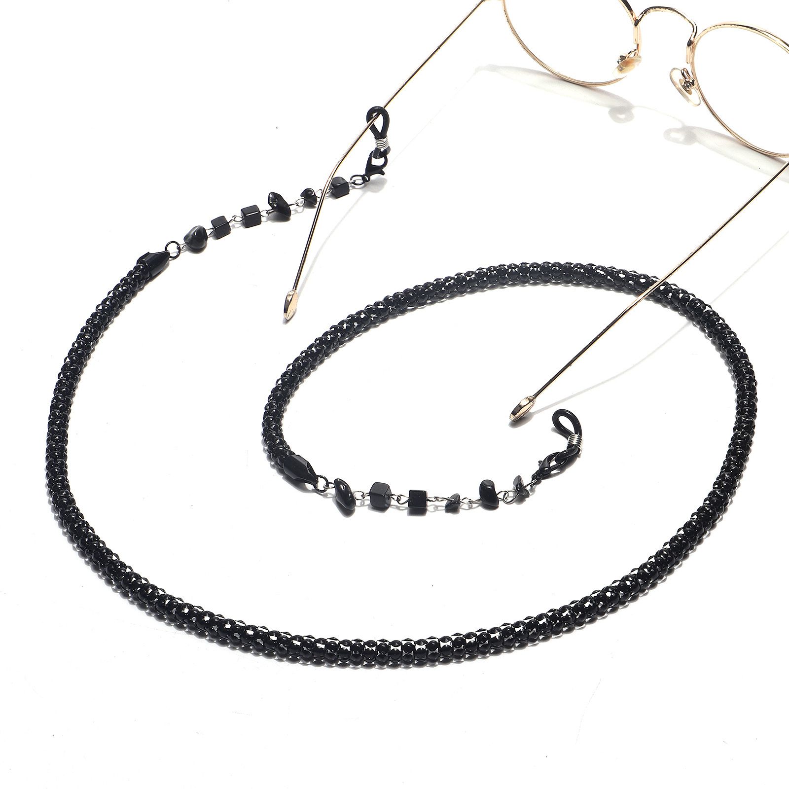 Металлическая нескользящая цепочка черного цвета, толщина 6 мм с натуральным камнем, для очков и масок GL1439