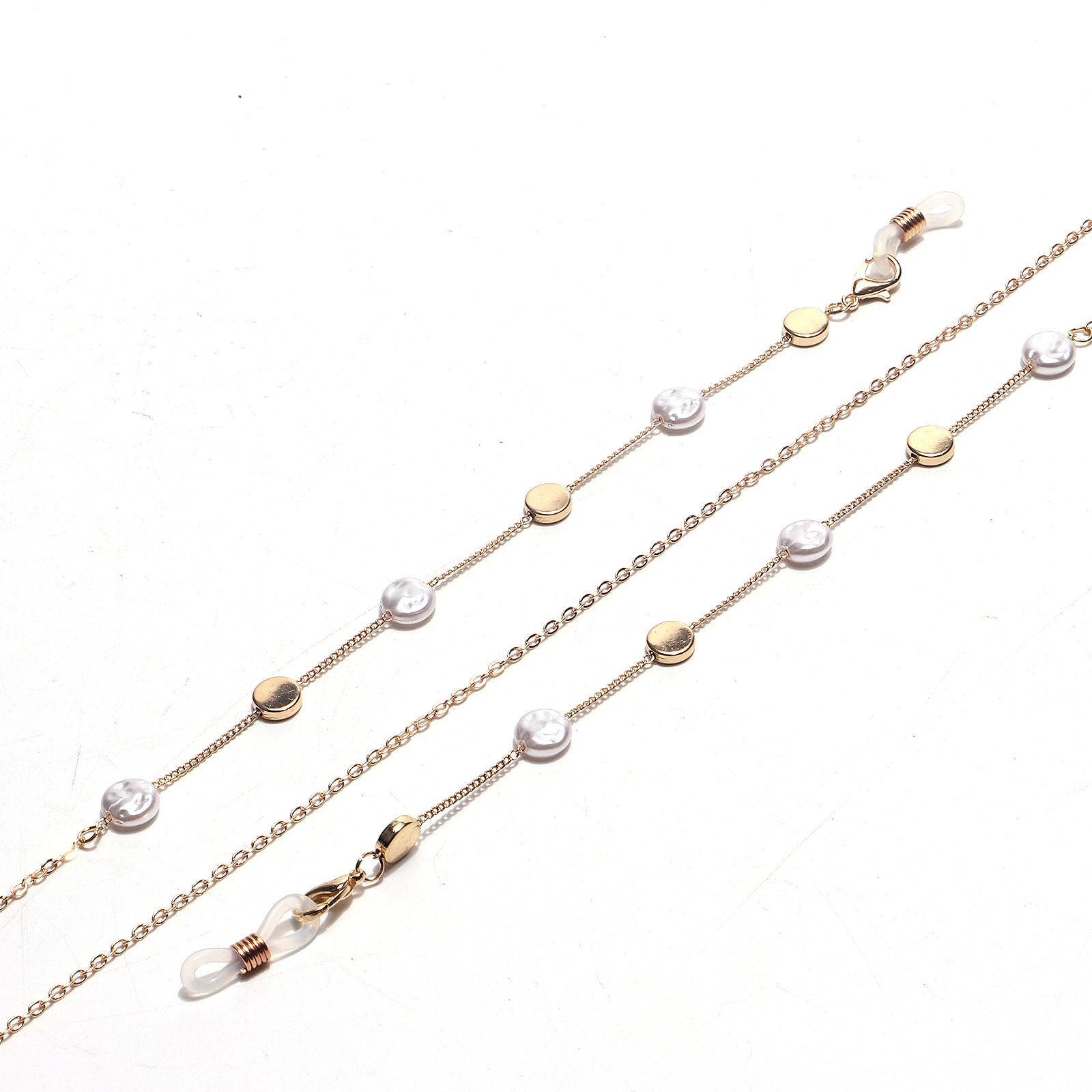 Металлическая нескользящая цепочка золотого цвета, с круглым жемчугом, для очков и масок GL1440