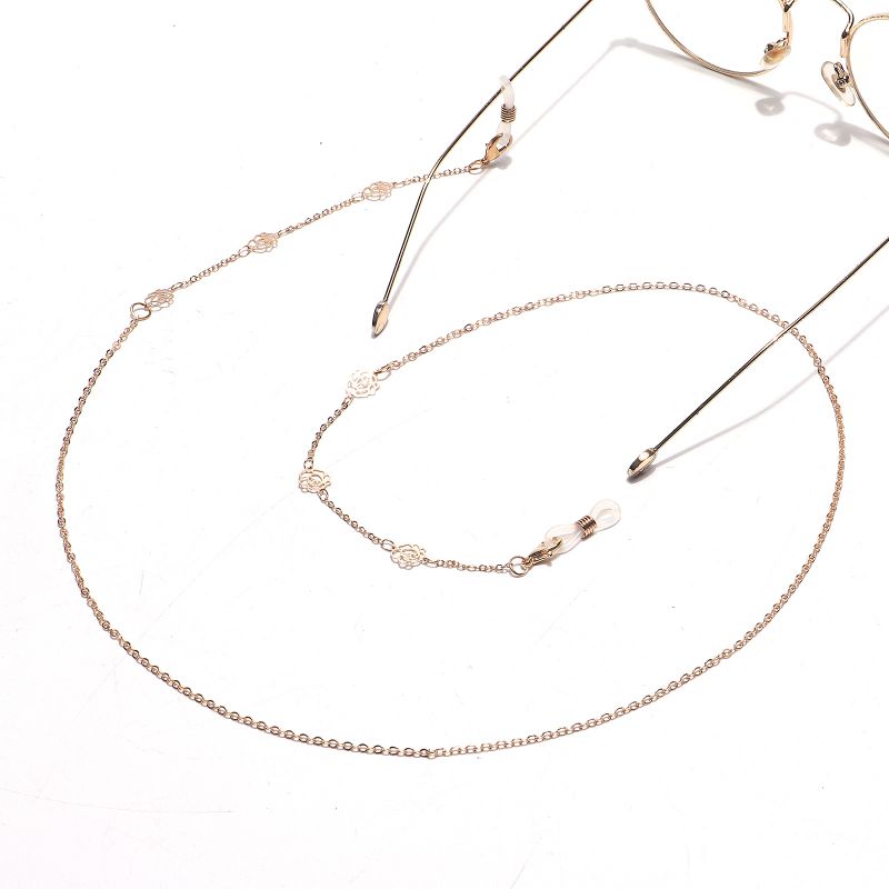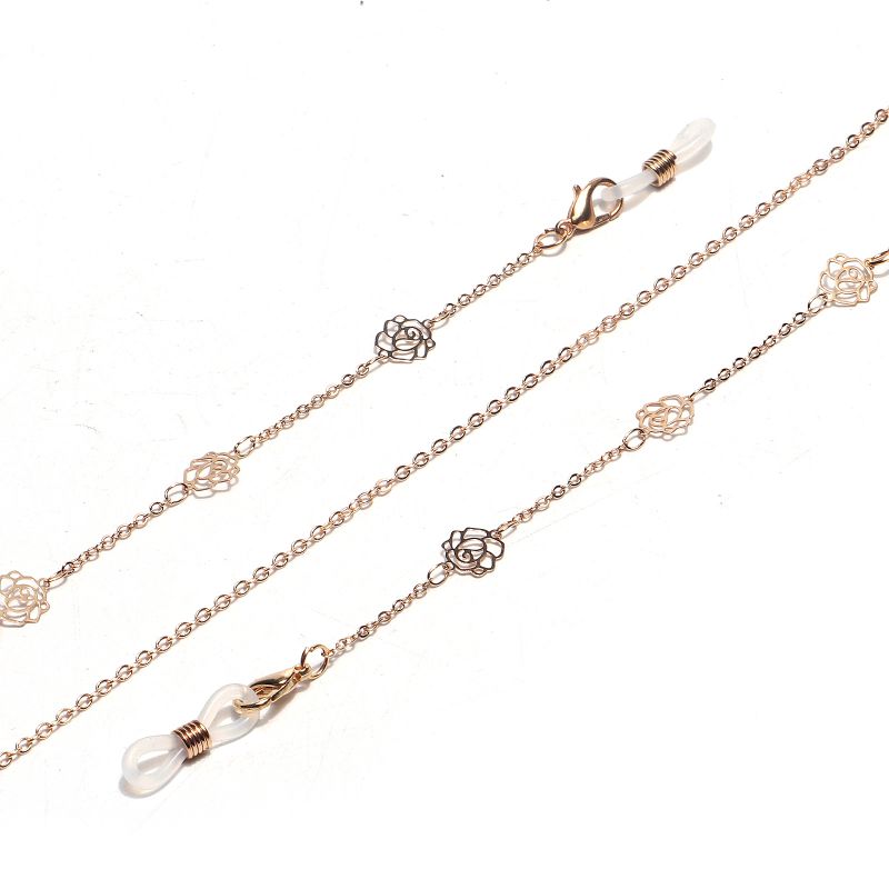 Металлическая нескользящая цепочка золотого цвета, с полой розой, для очков и масок GL1443