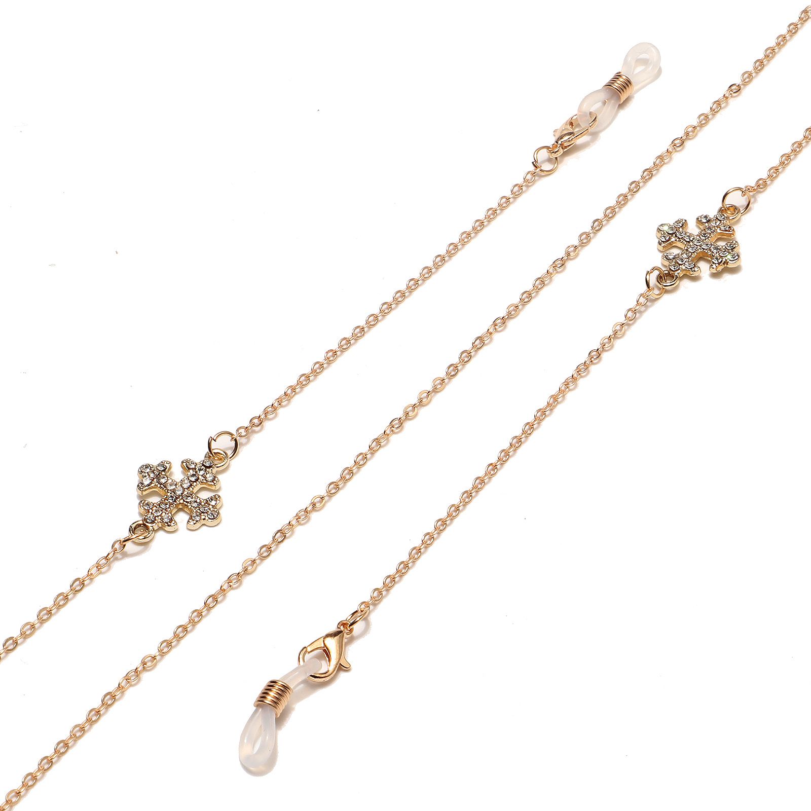 Металлическая нескользящая цепочка золотого цвета, с крестом со стразами, для очков и масок GL1445