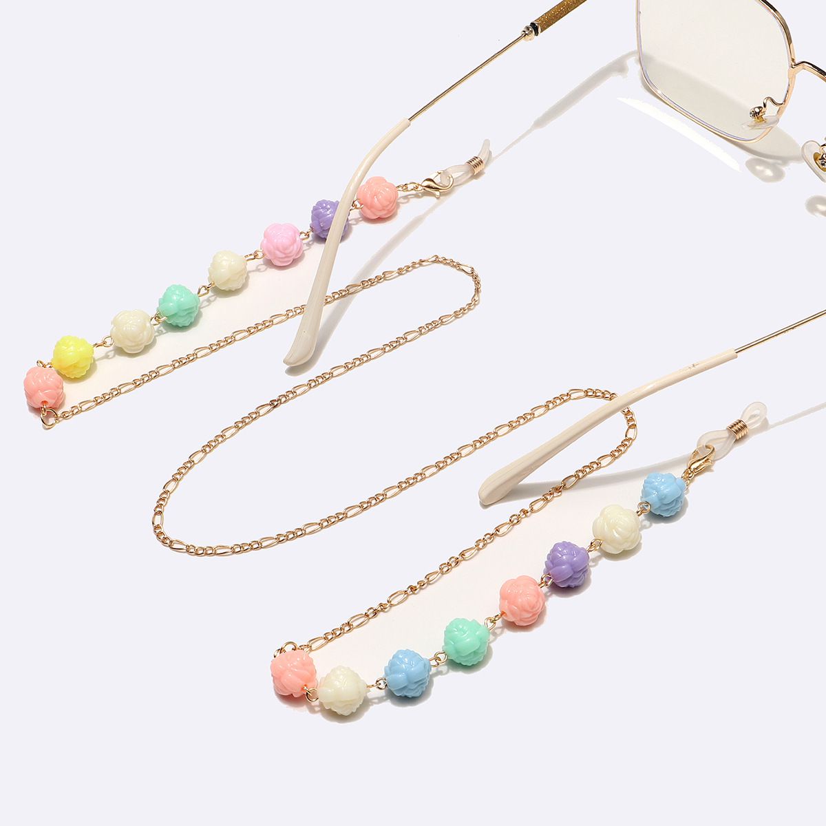 Металлическая нескользящая цепочка золотого цвета, с цветами, для очков и масок GL1450