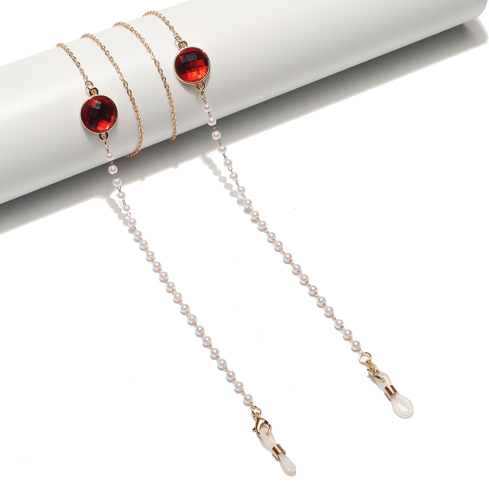 Металлическая нескользящая цепочка золотого цвета, с красным кристаллом и жемчугом, для очков и масок GL1505