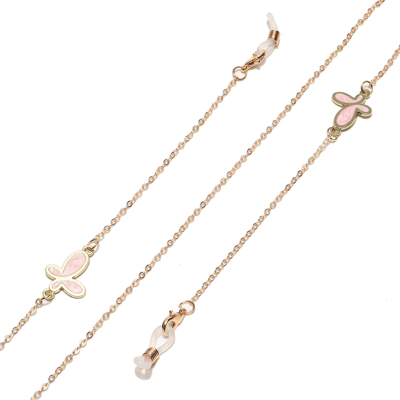 Металлическая нескользящая цепочка золотого цвета, с розовой бабочкой, для очков и масок GL1513
