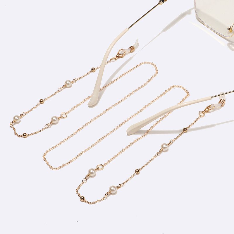 Металлическая нескользящая цепочка золотого цвета, с жемчугом, для очков и масок GL1535