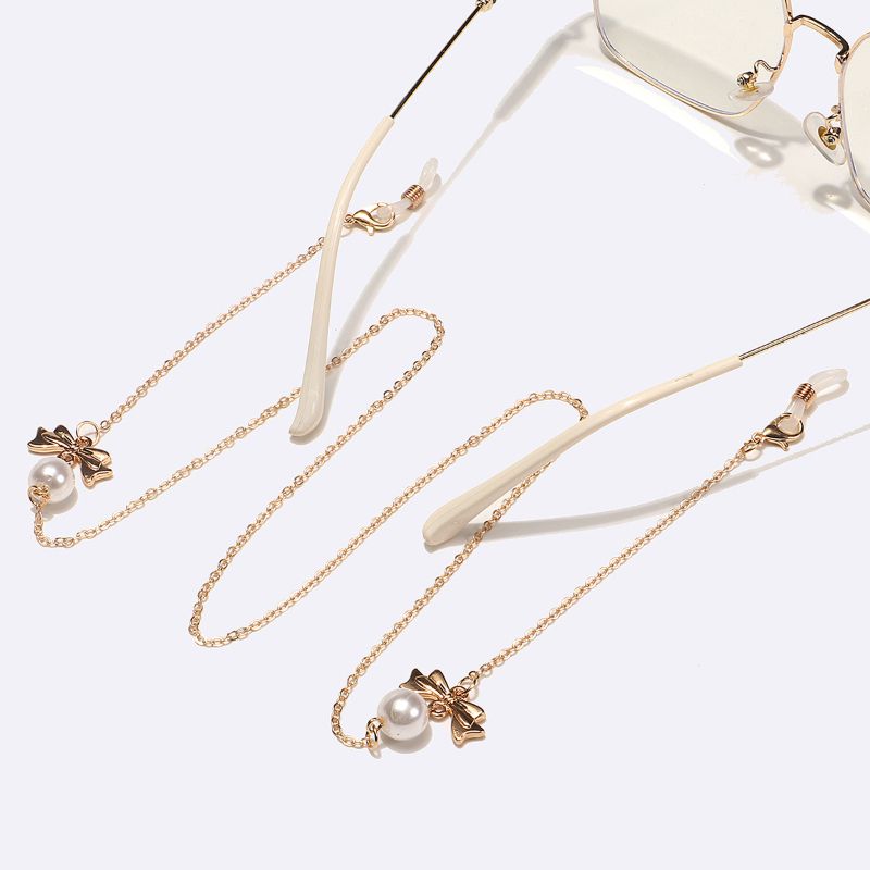 Металлическая нескользящая цепочка золотого цвета, с бантиком и жемчугом, для очков и масок GL1547