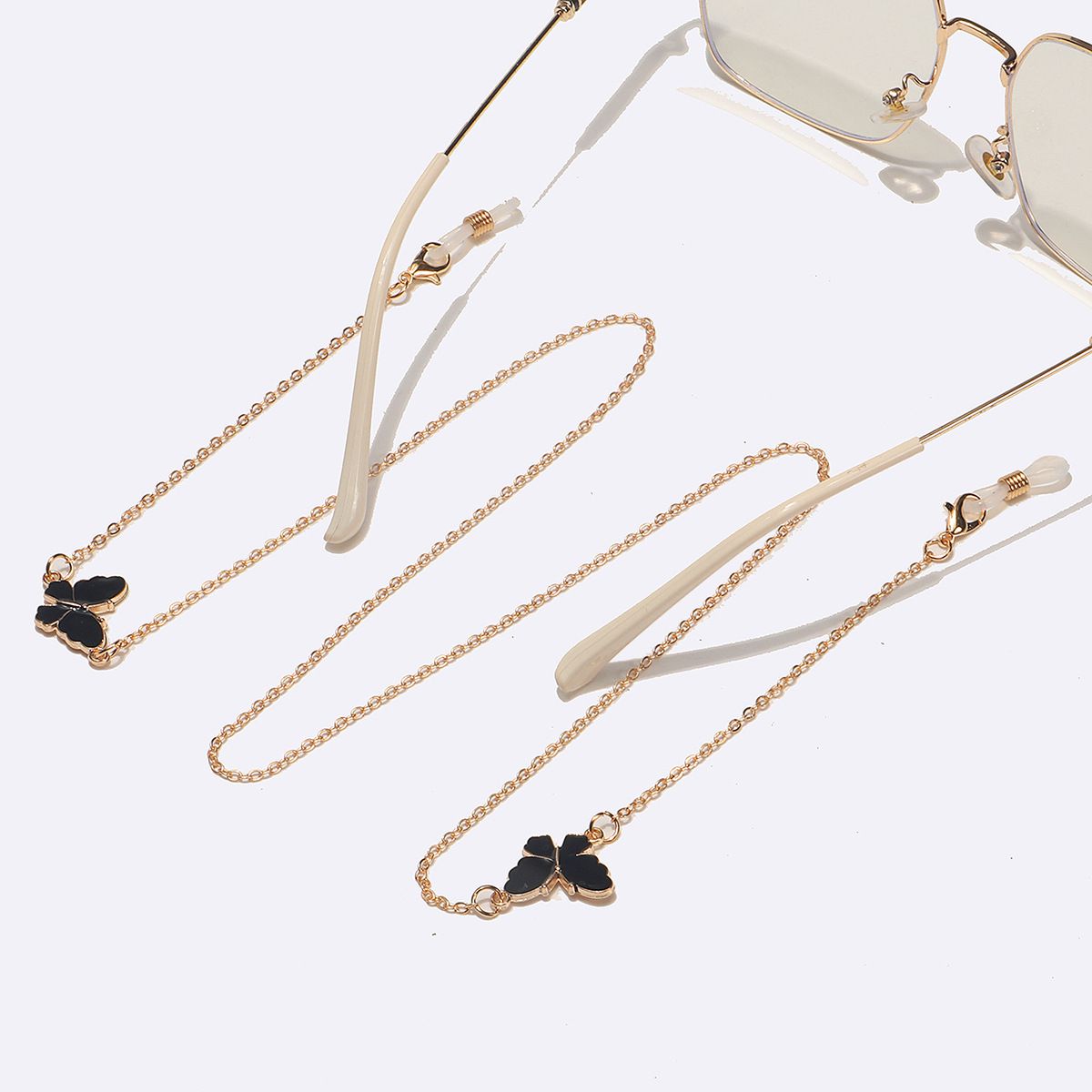 Металлическая нескользящая цепочка золотого цвета, с черной бабочкой, для очков и масок GL1561