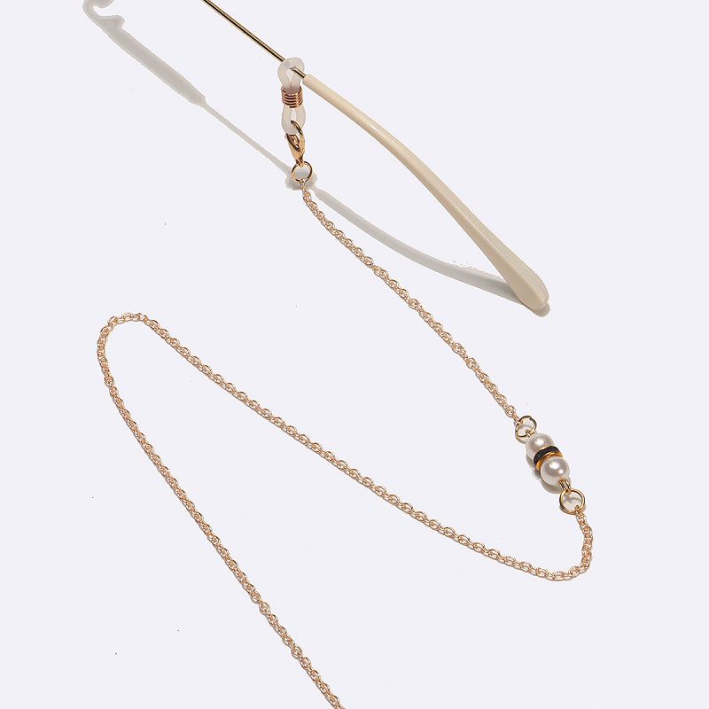 Металлическая нескользящая цепочка золотого цвета, c черным горным хрусталем и жемчугом, для очков и масок GL1562
