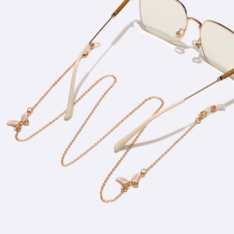 Металлическая нескользящая цепочка золотого цвета, с белой бабочкой, для очков и масок GL1577