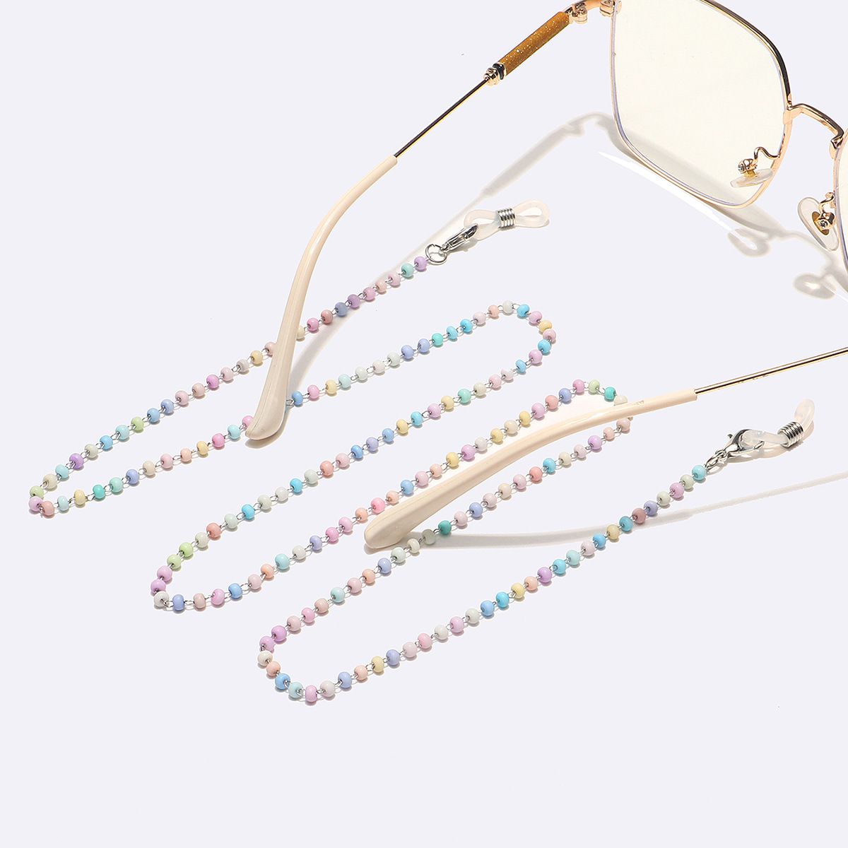 Металлическая нескользящая цепочка стального цвета, с цветными кристаллами, для очков и масок GL1594