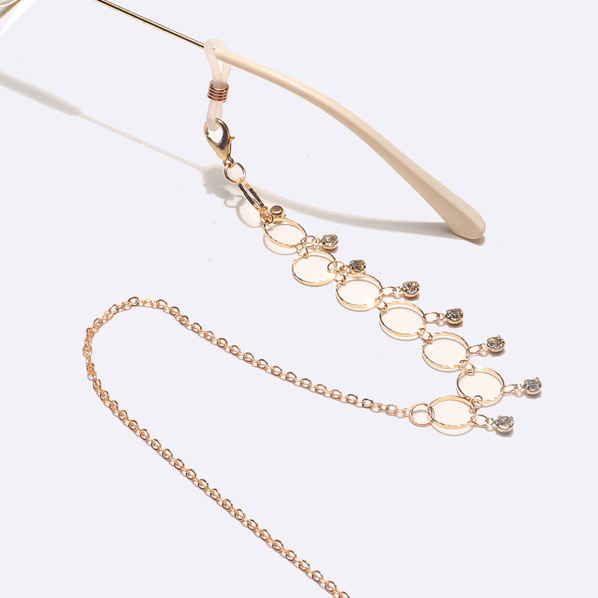Металлическая нескользящая цепочка золотого цвета, с кольцами и прозрачными стразами, для очков и масок GL1606