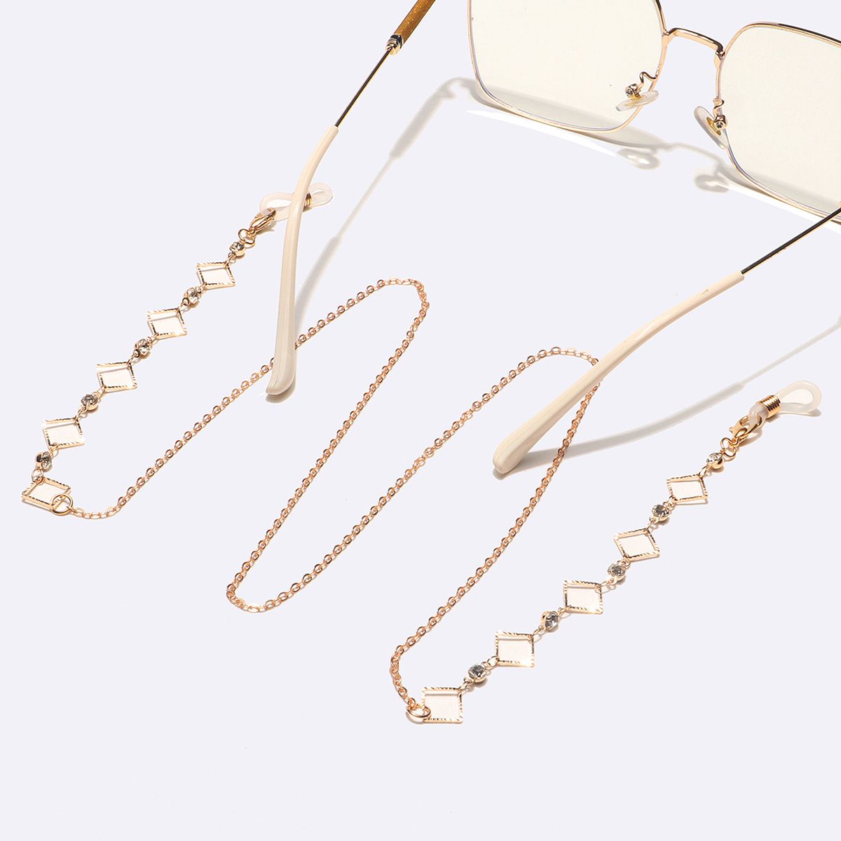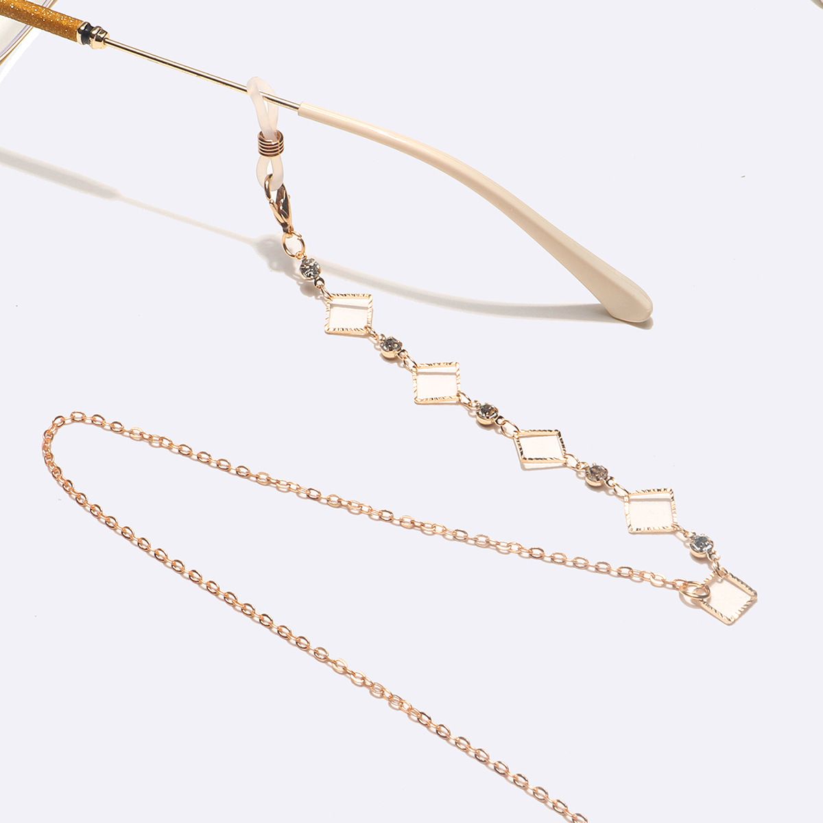 Металлическая нескользящая цепочка золотого цвета, с квадратами и прозрачными стразами, для очков и масок GL1609