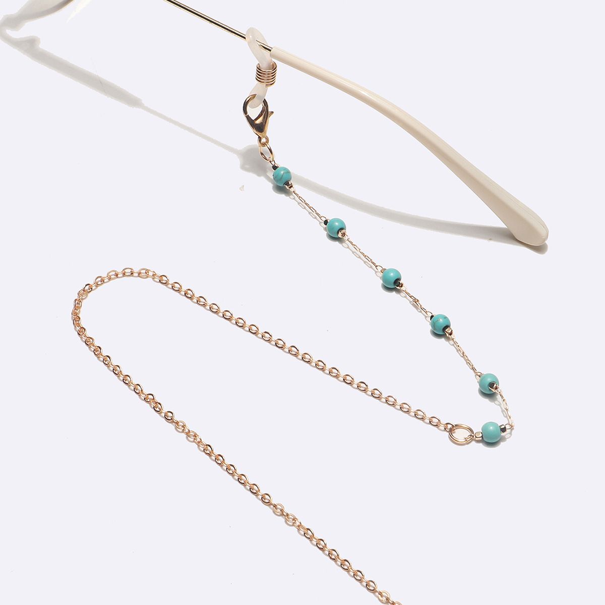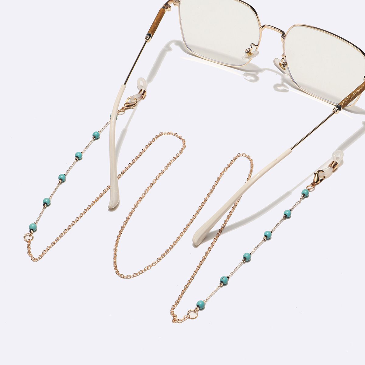 Металлическая нескользящая цепочка золотого цвета, с натуральной бирюзой, для очков и масок GL1618