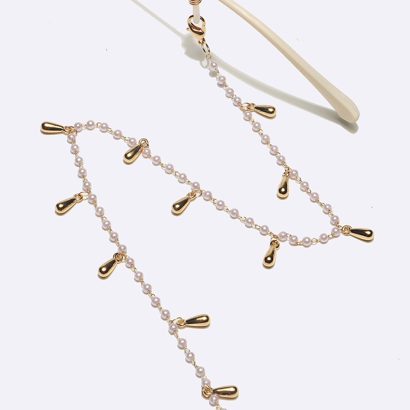 Металлическая нескользящая цепочка золотого цвета, с жемчугом и бусинами в виде капли воды, для очков и масок GL1697