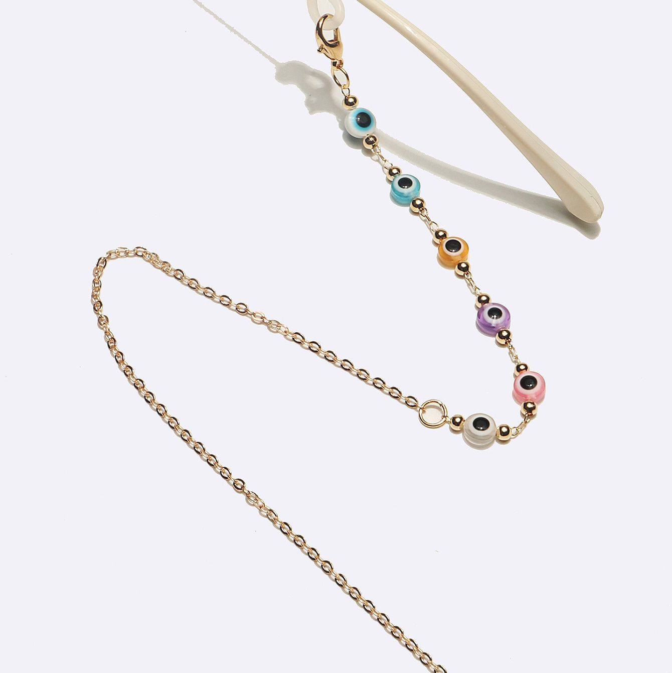 Металлическая нескользящая цепочка золотого цвета, со стеклянымиыми цветными бусинами , для очков и масок GL1703