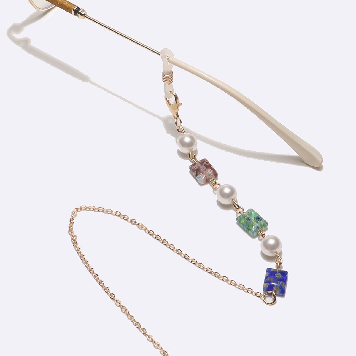 Металлическая нескользящая цепочка золотого цвета, с цветными прямоугольниками и жемчугом, для очков и масок GL1728