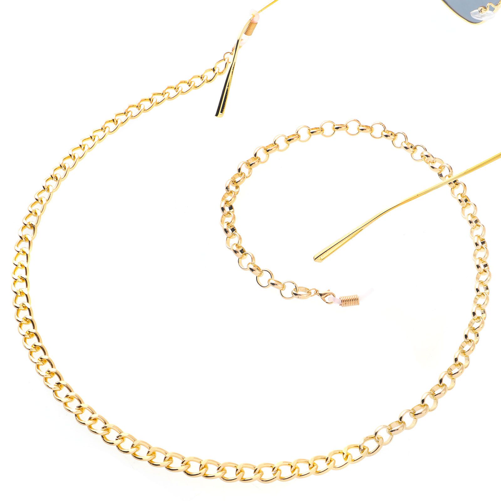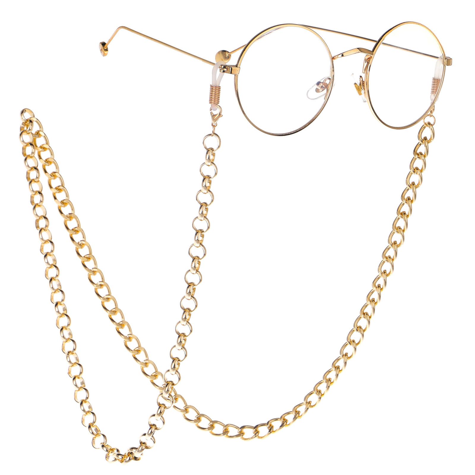 Металлическая нескользящая цепочка золотого цвета, круглая и толстая, для очков и масок GL184