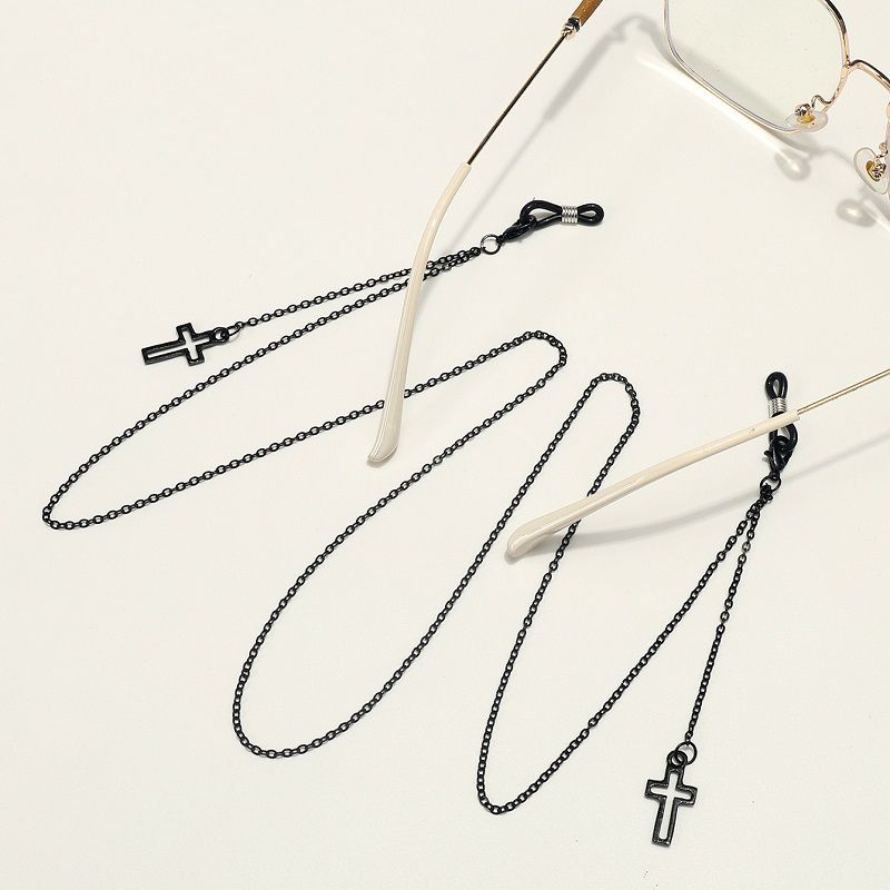 Металлическая нескользящая цепочка черного цвета, c крестом, для очков и масок GL1846