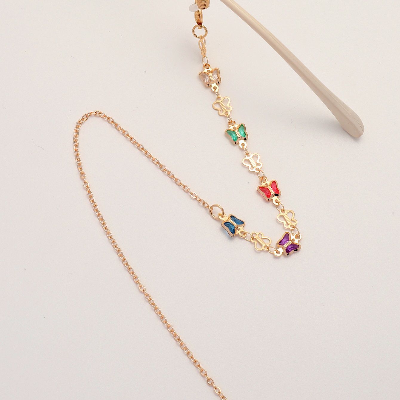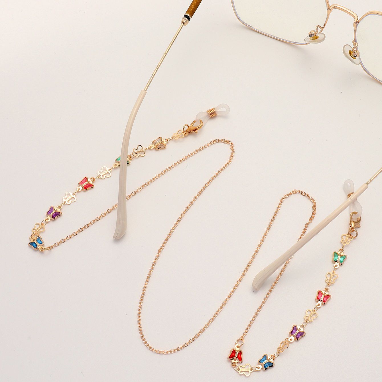 Металлическая нескользящая цепочка золотого цвета, с разноцветными и полыми бабочками, для очков и масок GL1850