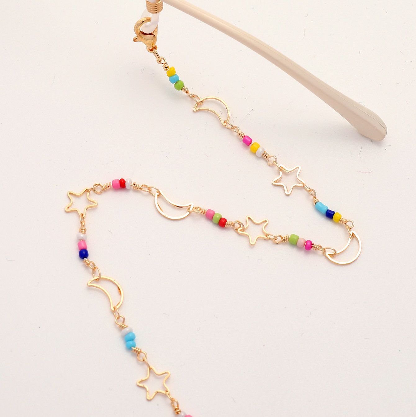 Металлическая нескользящая цепочка золотого цвета, с цветными бусинами и полыми звездой и луной, для очков и масок GL1851