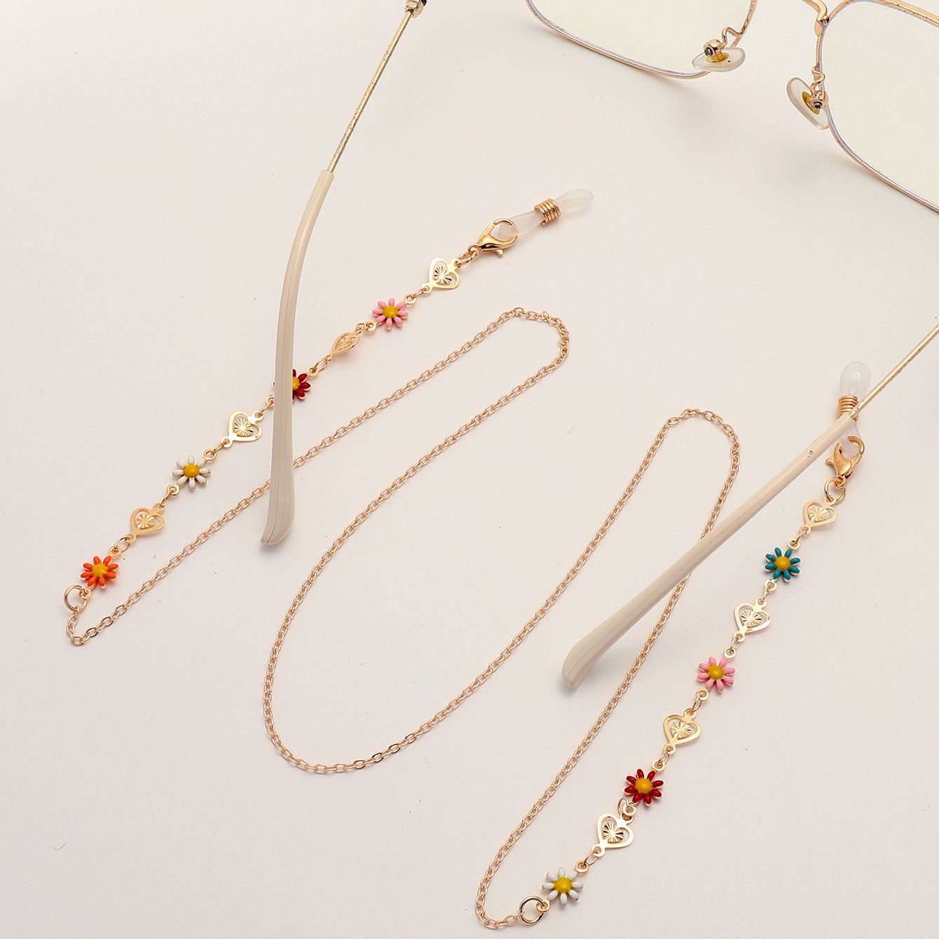Металлическая нескользящая цепочка золотого цвета, с разноцветными ромашками и сердцем, для очков и масок GL1855