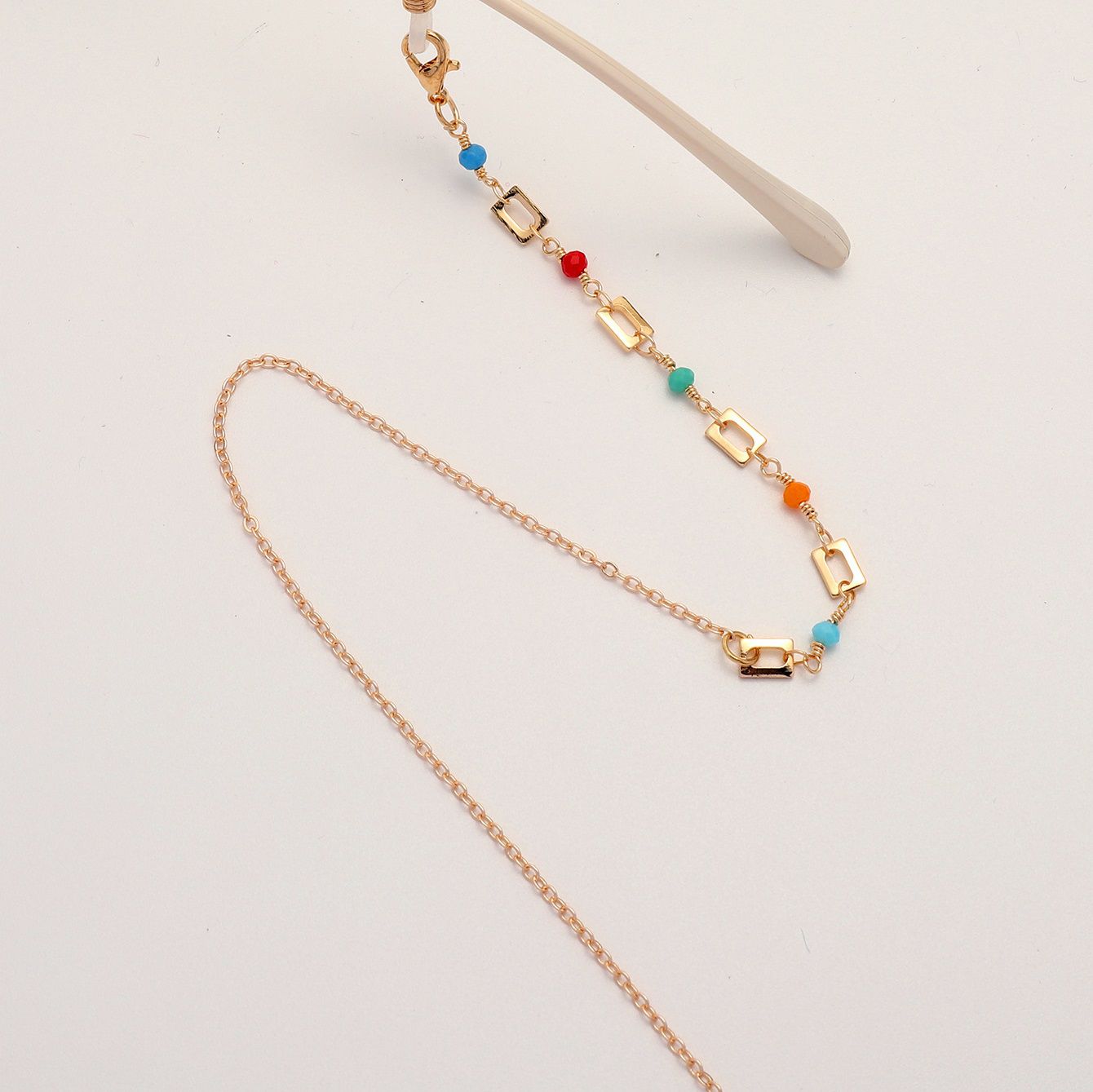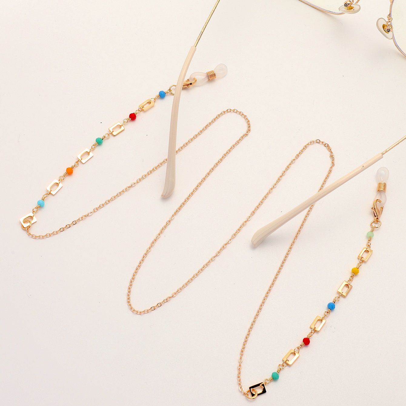 Металлическая нескользящая цепочка золотого цвета, с цветными кристаллами и металлическими прямоугольниками, для очков и масок GL1859
