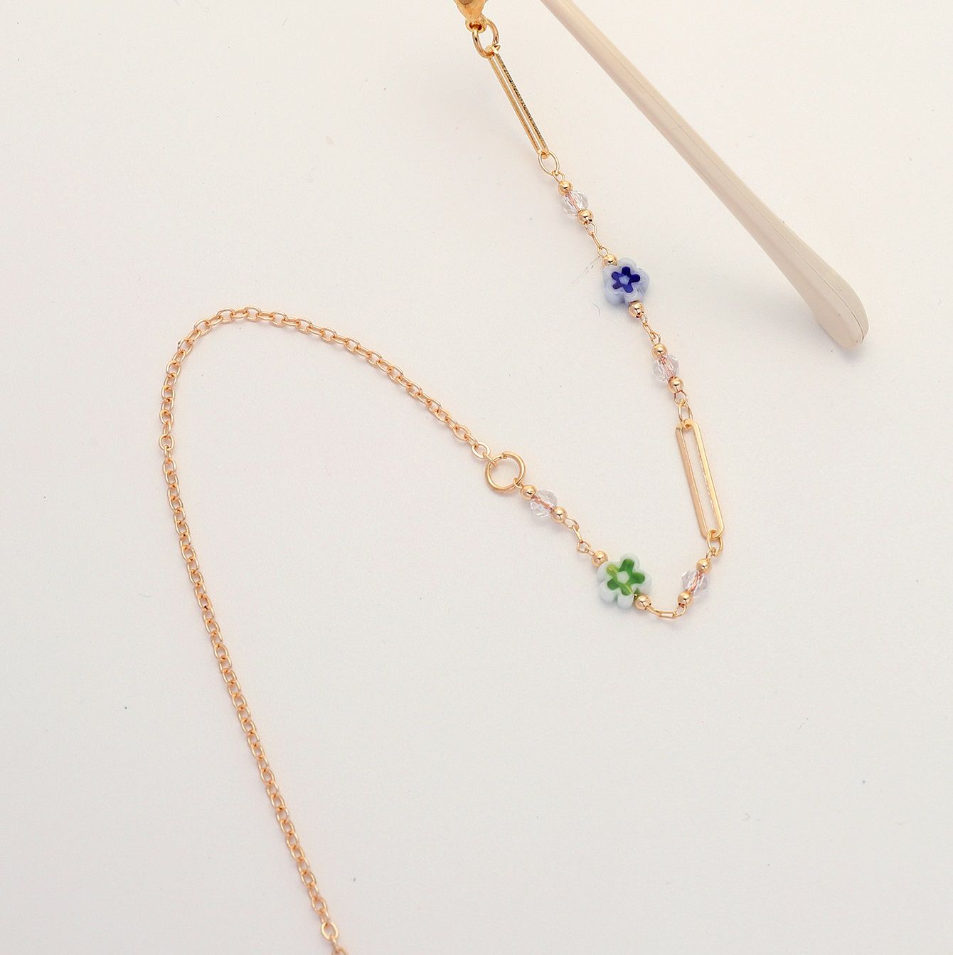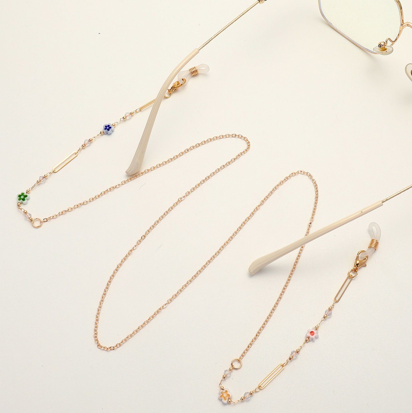 Металлическая нескользящая цепочка золотого цвета, с овалами, цветами и кристаллами, для очков и масок GL1860