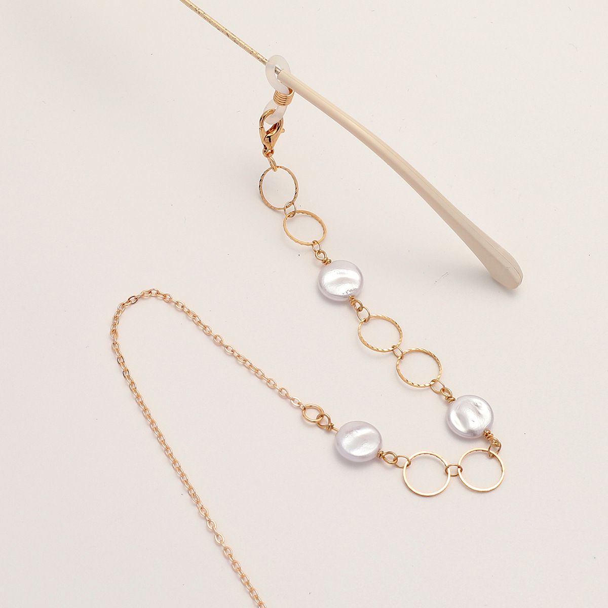 Металлическая нескользящая цепочка золотого цвета, с жемчужными и металлическими кругами, для очков и масок GL1867