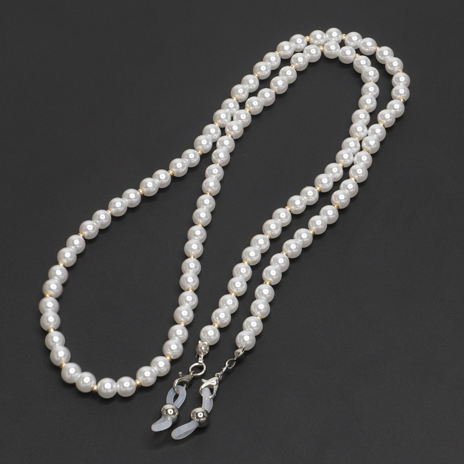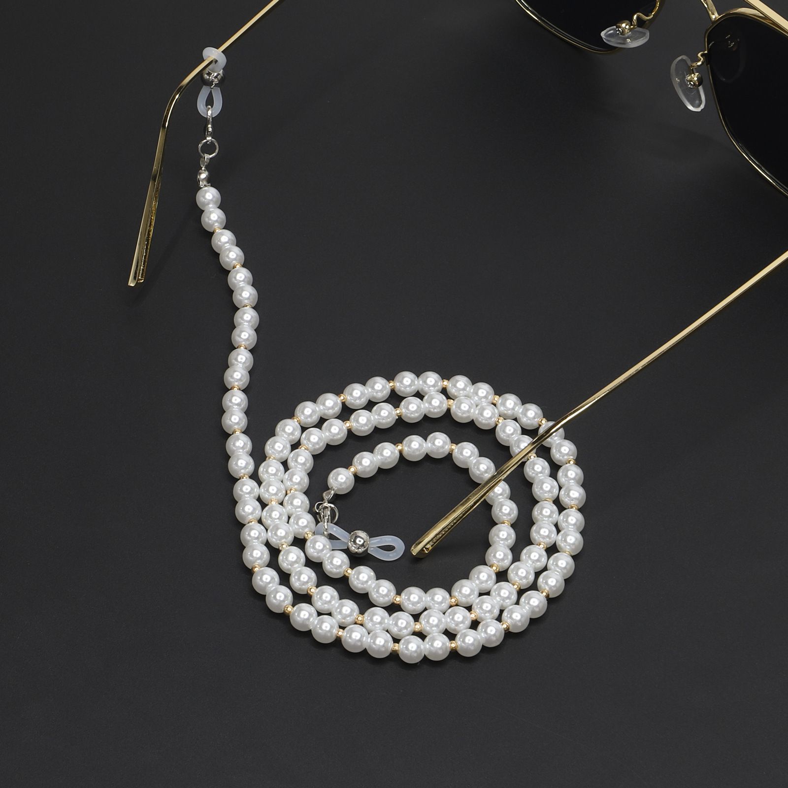 Металлическая нескользящая цепочка, с золотыми и жемчужными бусинами, для очков и масок GL216