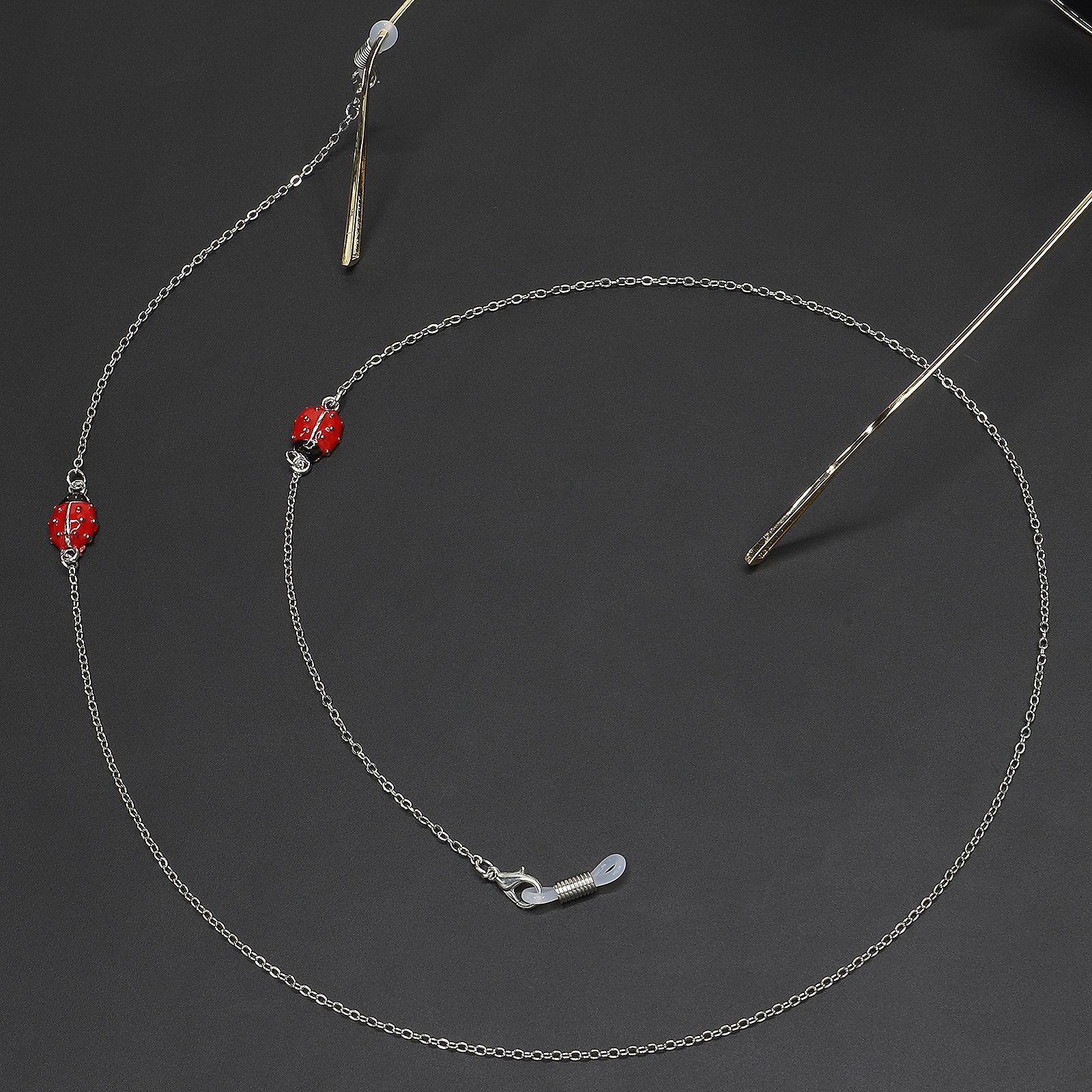 Металлическая нескользящая цепочка серебряного цвета, с божьей коровкой, для очков и масок GL231