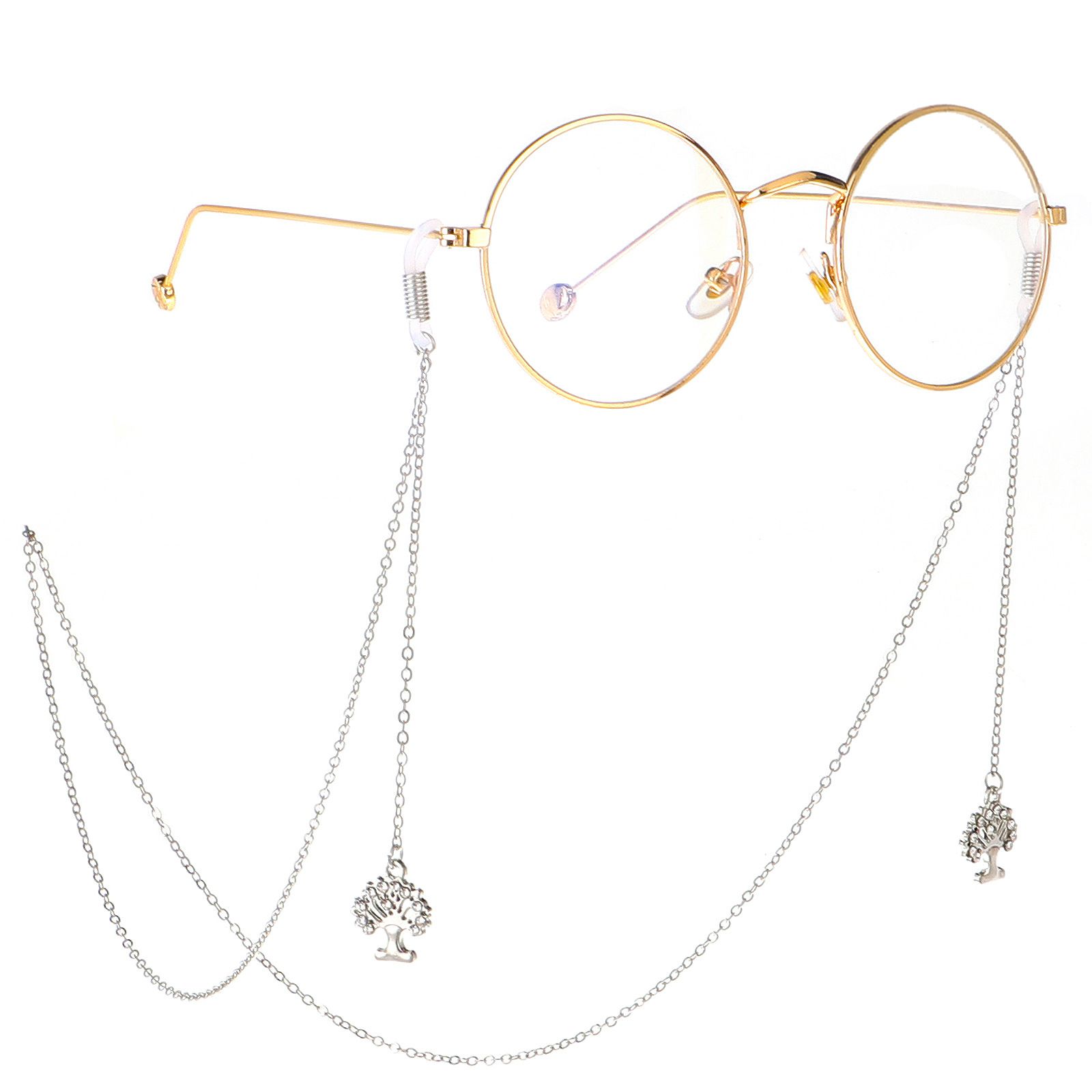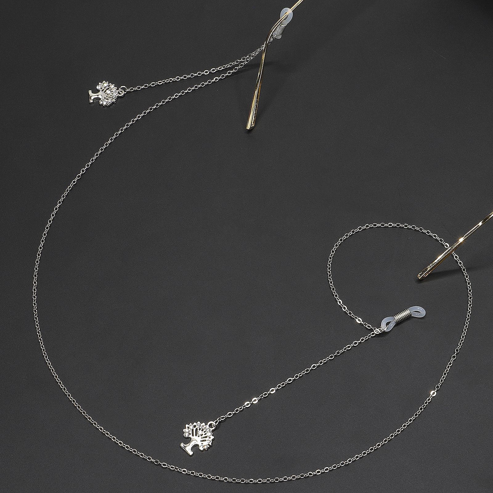 Металлическая нескользящая цепочка серебряного цвета, с подвеской дерево жизни со стразами, для очков и масок GL233