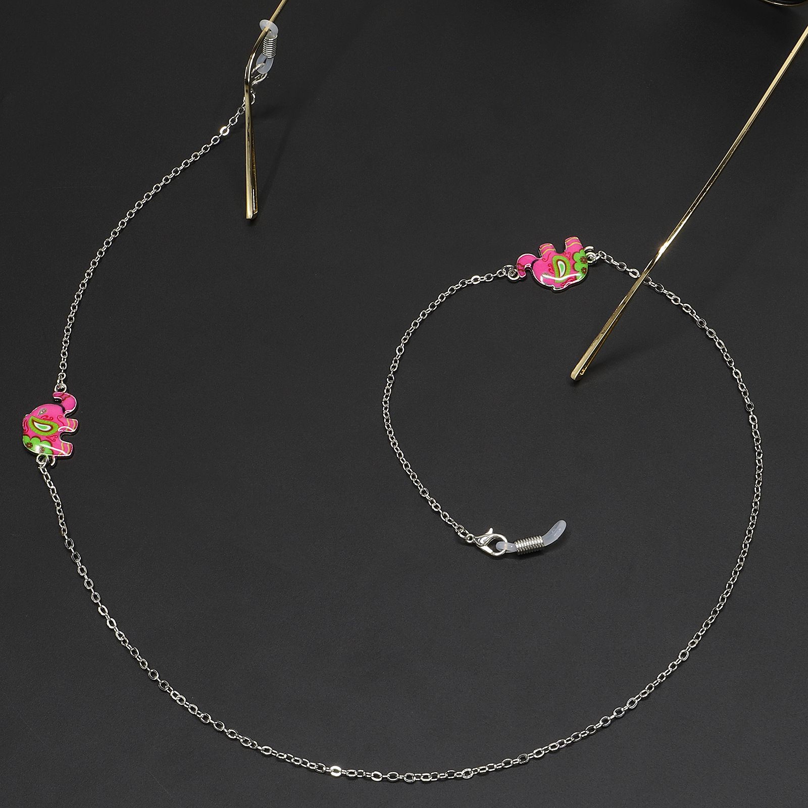 Металлическая нескользящая цепочка серебряного цвета, с красным слоном, для очков и масок GL236