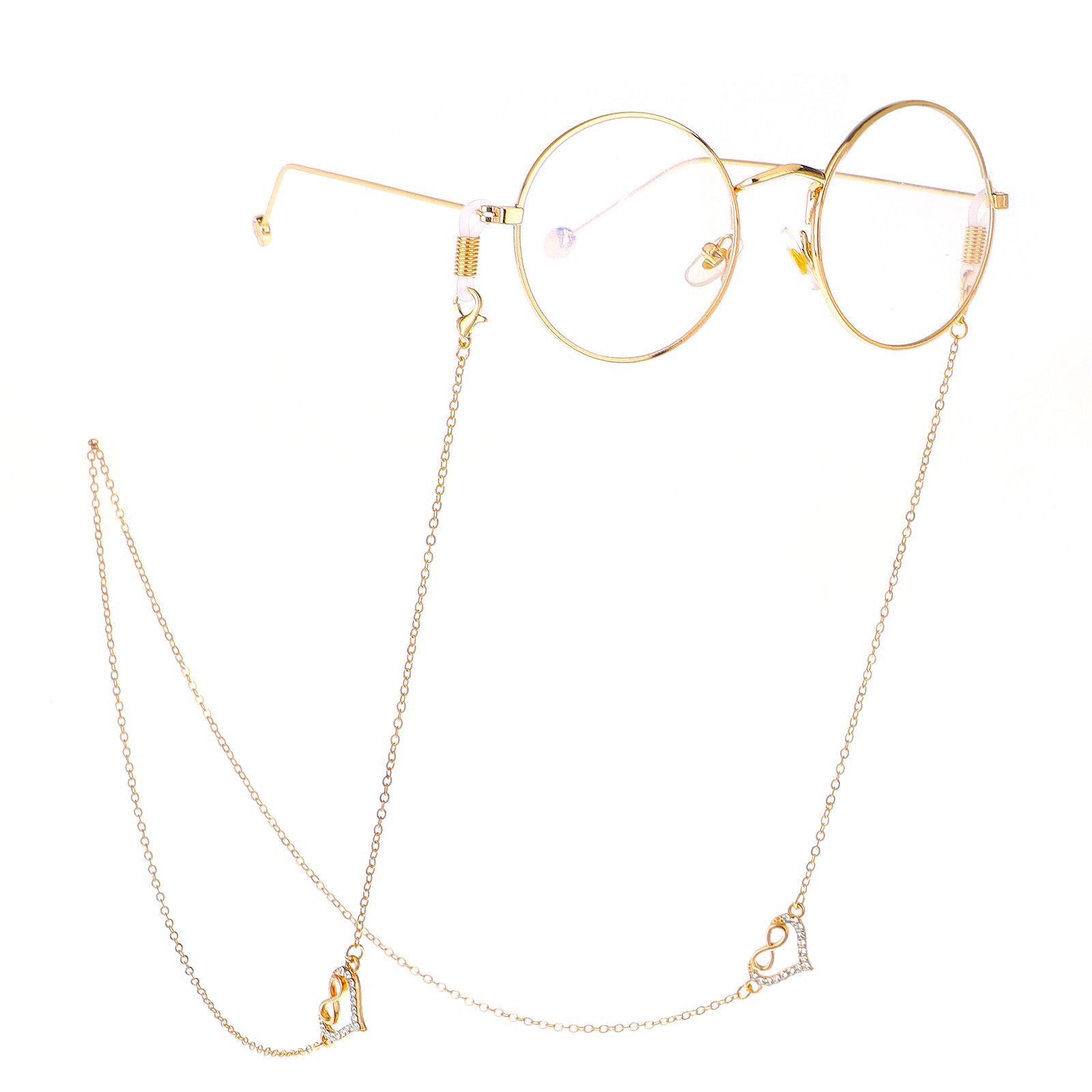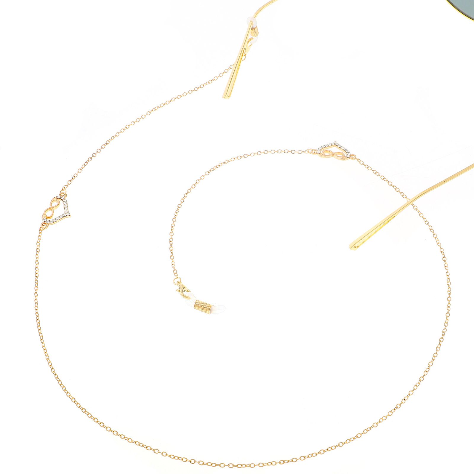 Металлическая нескользящая цепочка золотого цвета, с сердцем со стразами, для очков и масок GL258