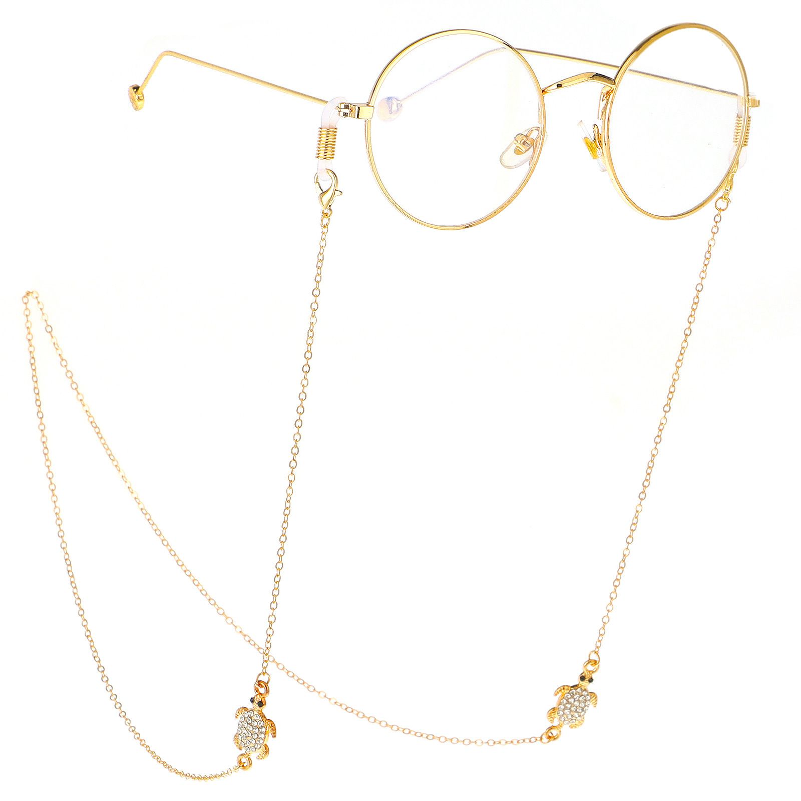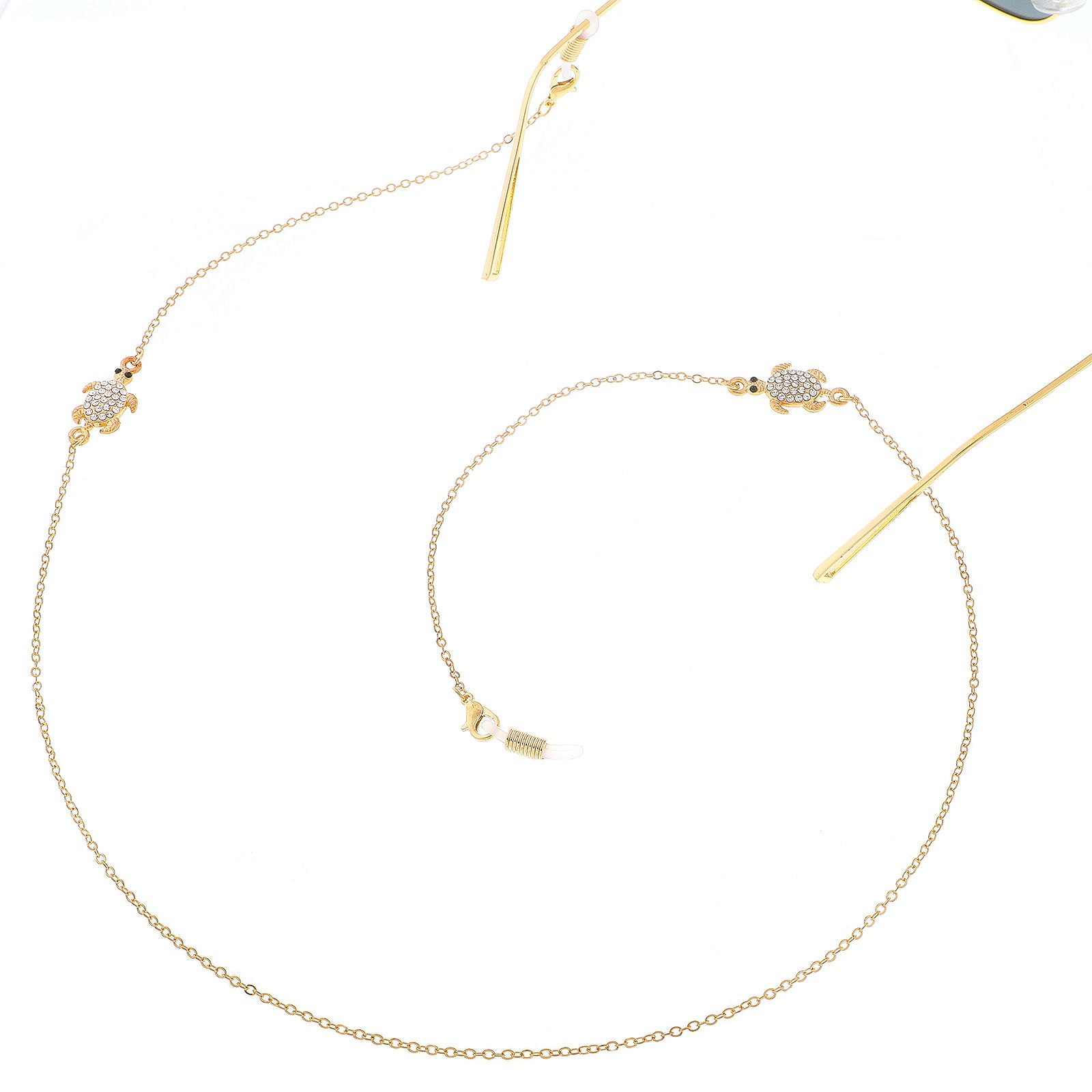 Металлическая нескользящая цепочка золотого цвета, с морской черепахой со стразами, для очков и масок GL260