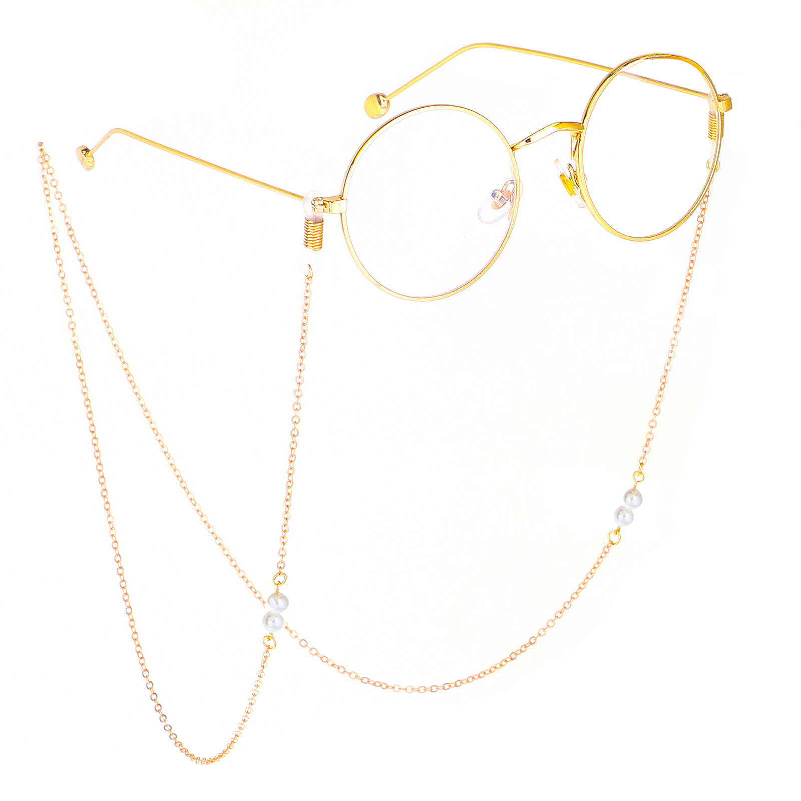 Металлическая нескользящая цепочка, с бусинами из жемчуга, для очков и масок GL286-1