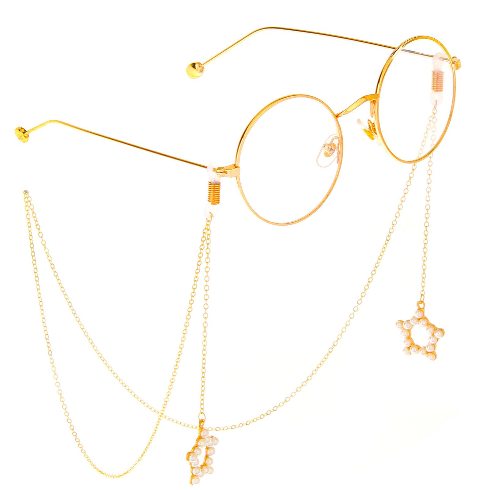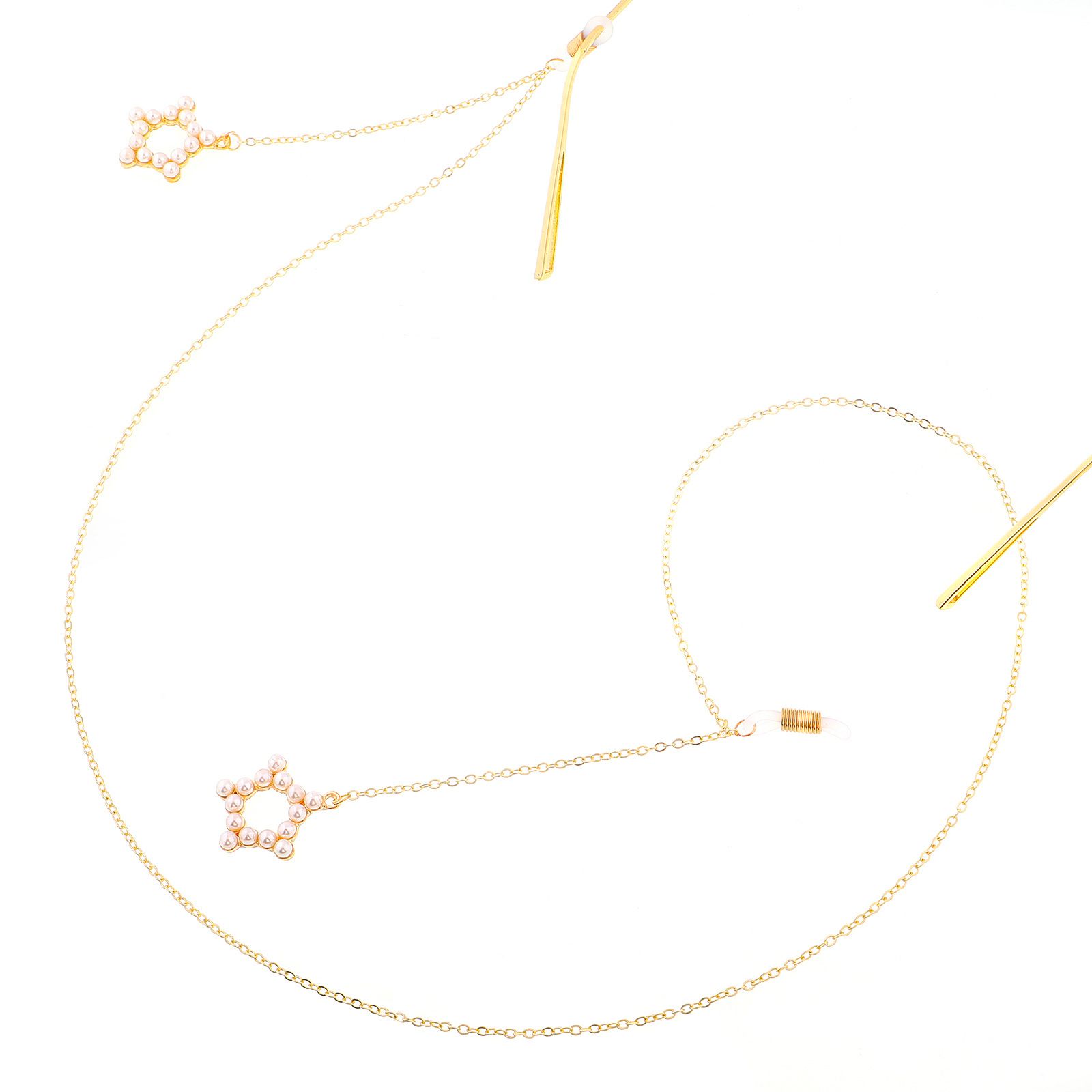 Металлическая нескользящая цепочка золотого цвета, с подвеской в виде звезды с жемчугом, для очков и масок GL299