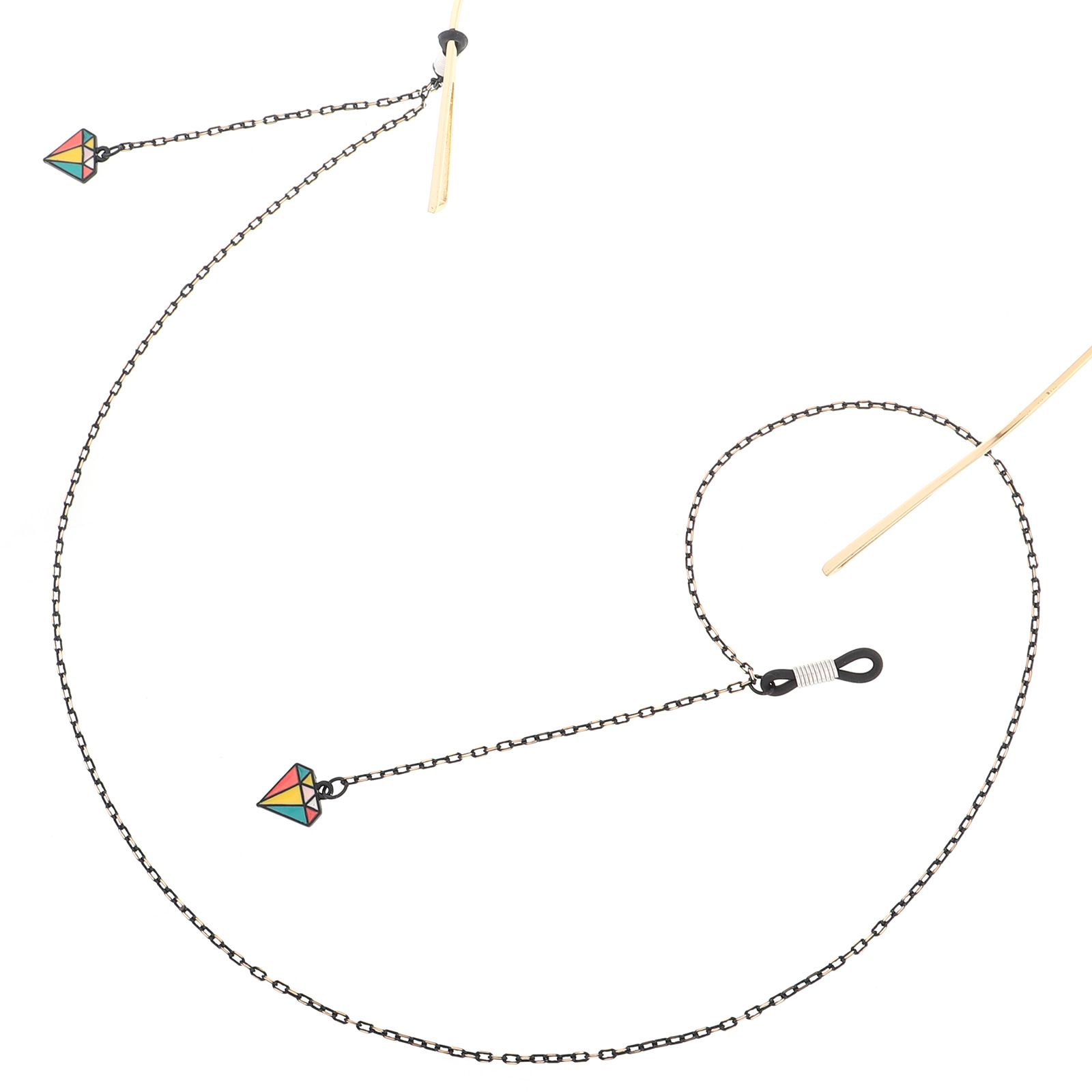 Металлическая нескользящая цепочка черного цвета, с подвеской в виде ромба, для очков и масок GL301