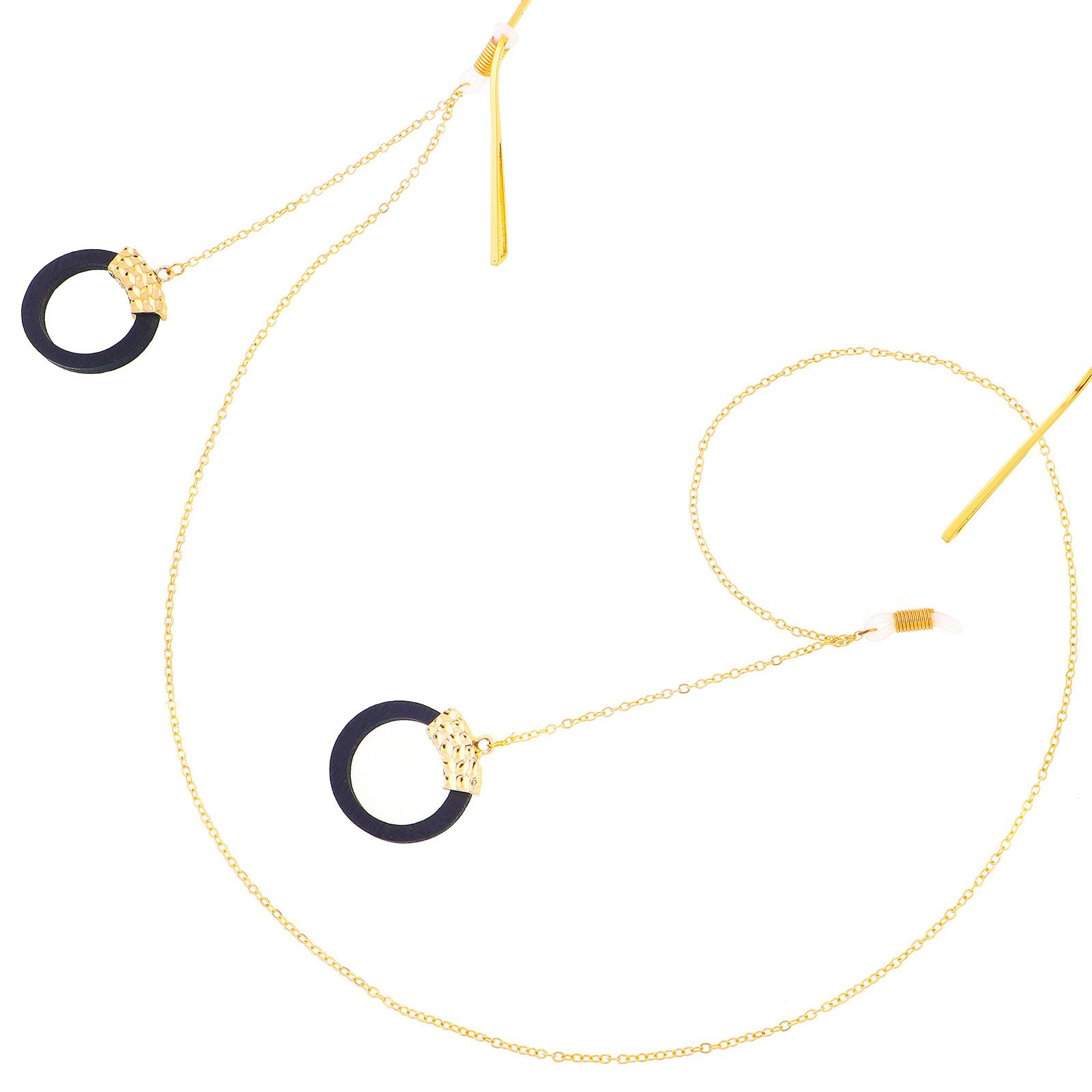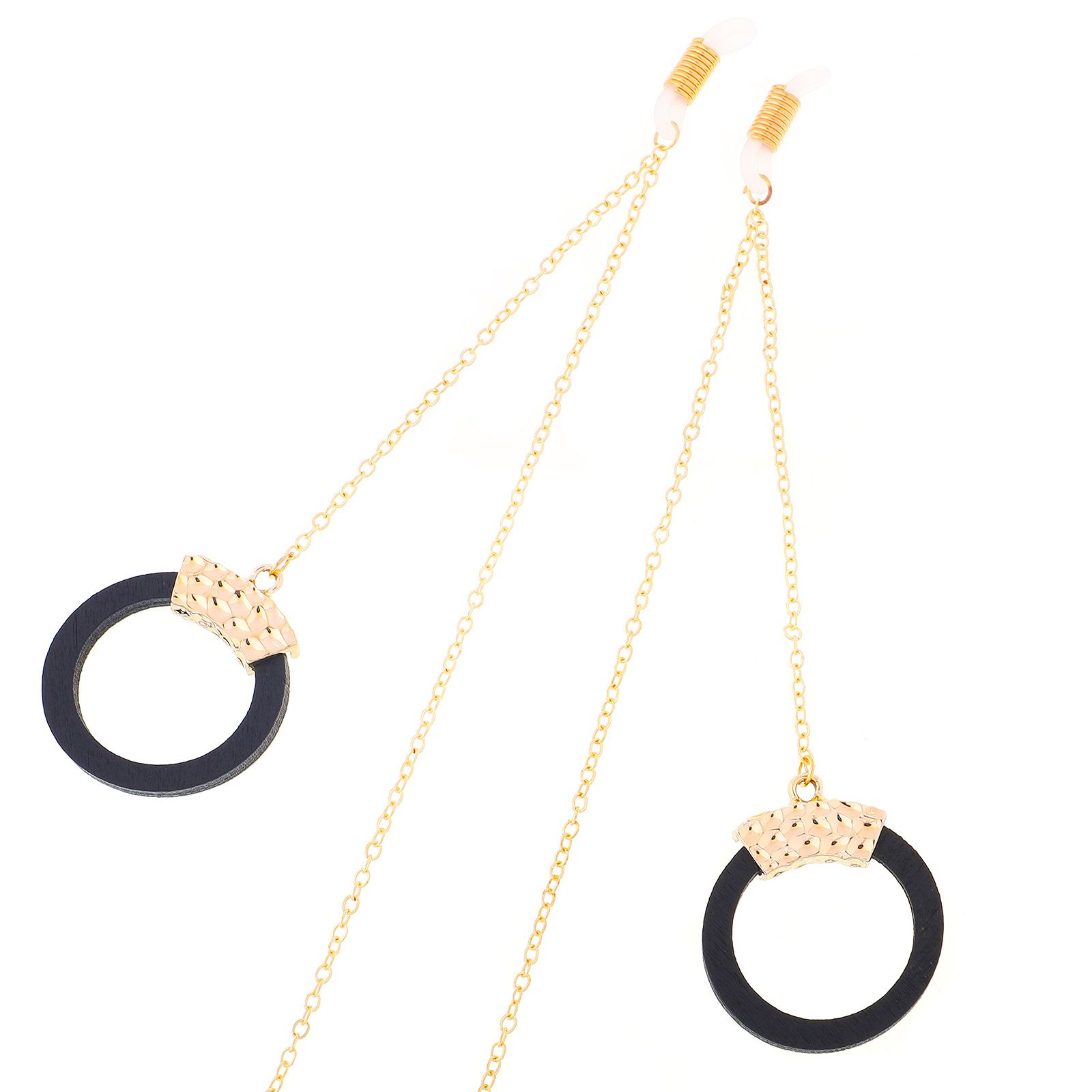 Металлическая нескользящая цепочка золотого цвета, с деревянным черным круглым кулоном, для очков и масок GL308