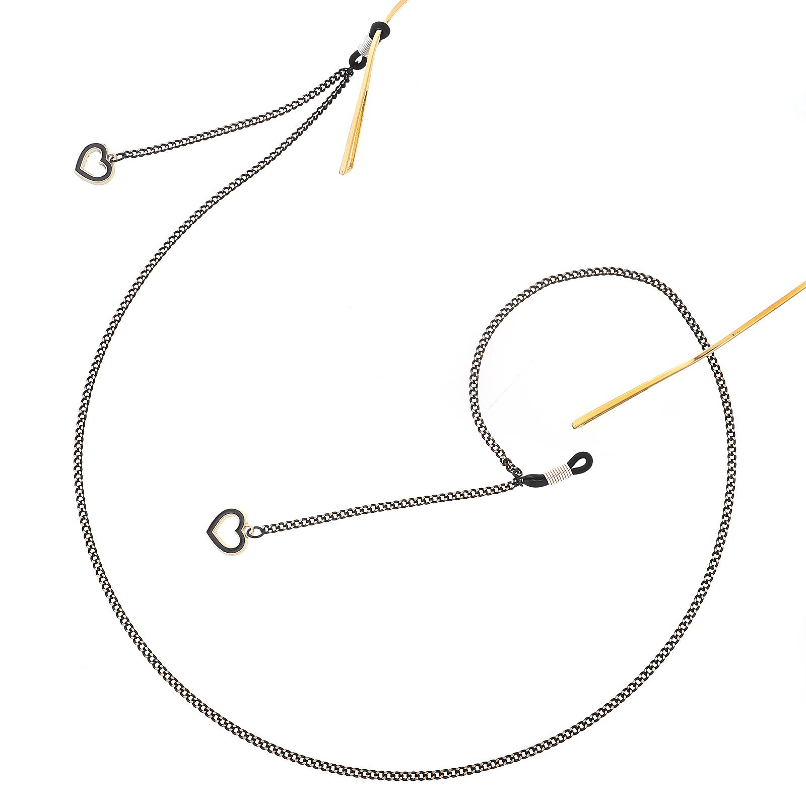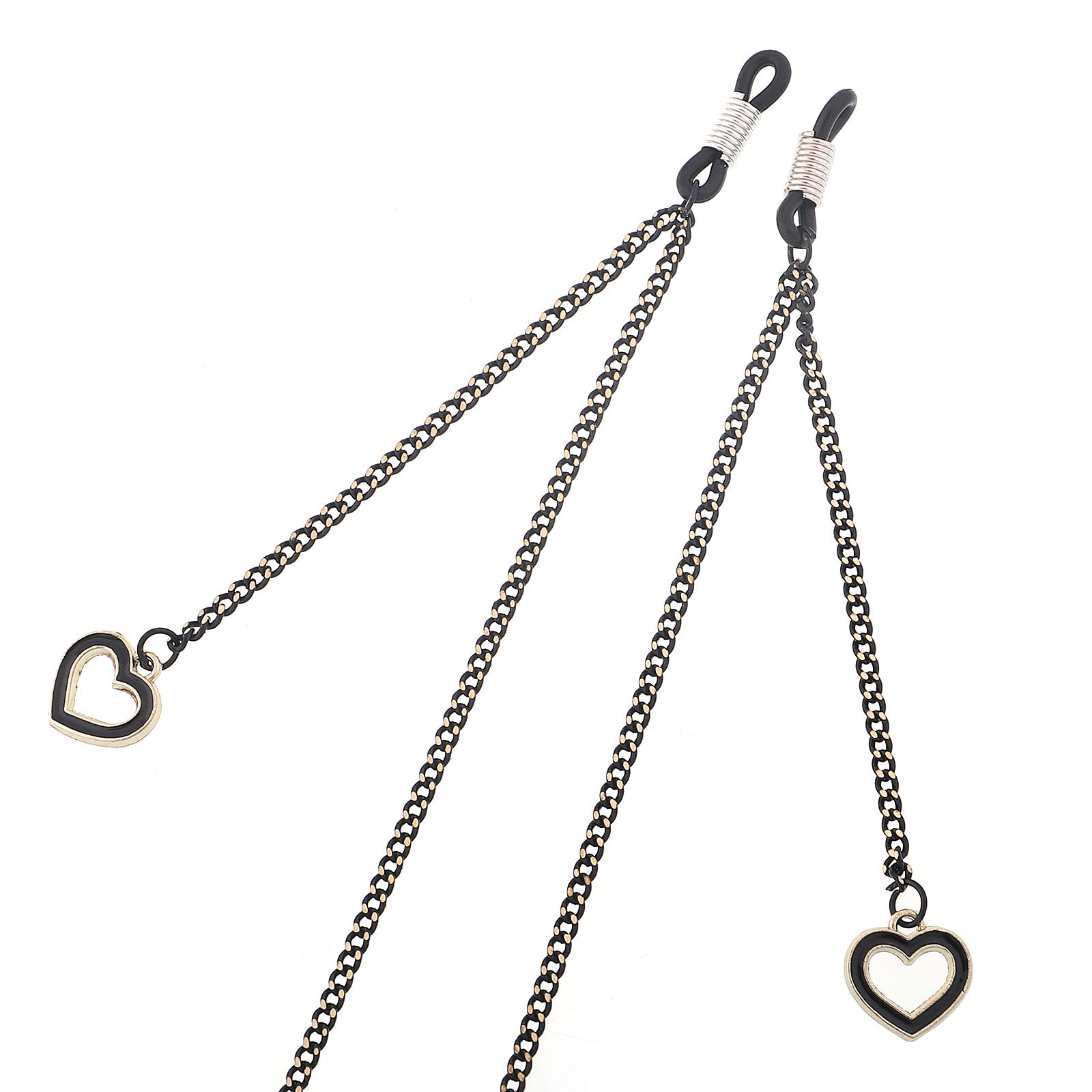 Металлическая нескользящая цепочка черного цвета, с подвеской в виде полого сердца, для очков и масок GL366